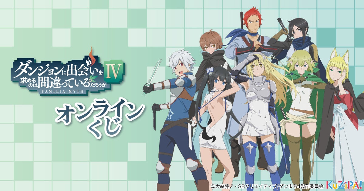 株式会社CREST(本社:東京都新宿区、代表取締役:三上政高/梁 俊模、以下「CREST」)は、運営するオンラインくじサービス「KuZiPA!」において、アニメ『ダンジョンに出会いを求めるのは間違っているだろうかⅣ』くじを9月9日(金)12時より販売開始致します。一部アイテムには「KuZiPA!」オリジナルの「夏祭り」テイストの描き起こしイラストを使用しています。