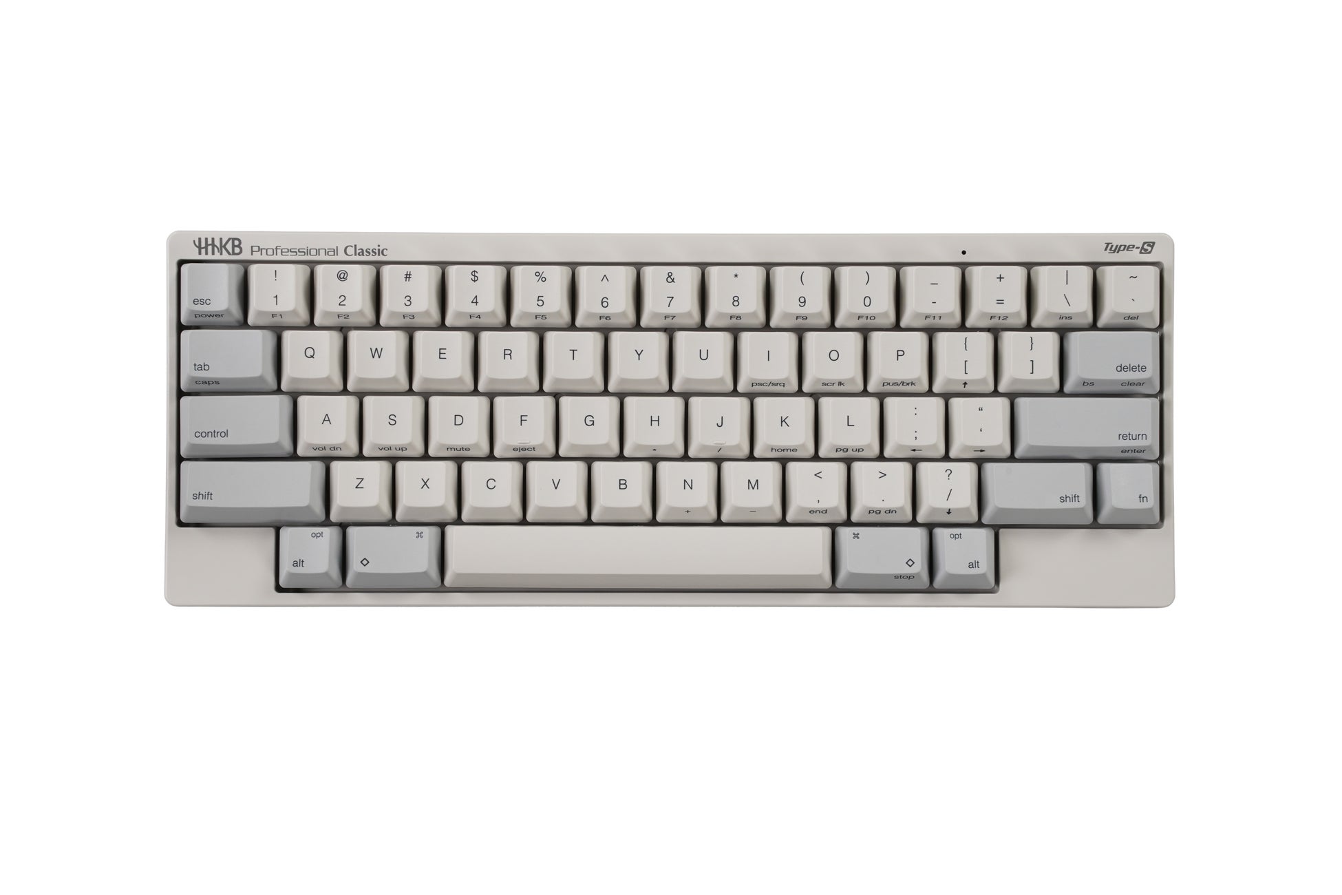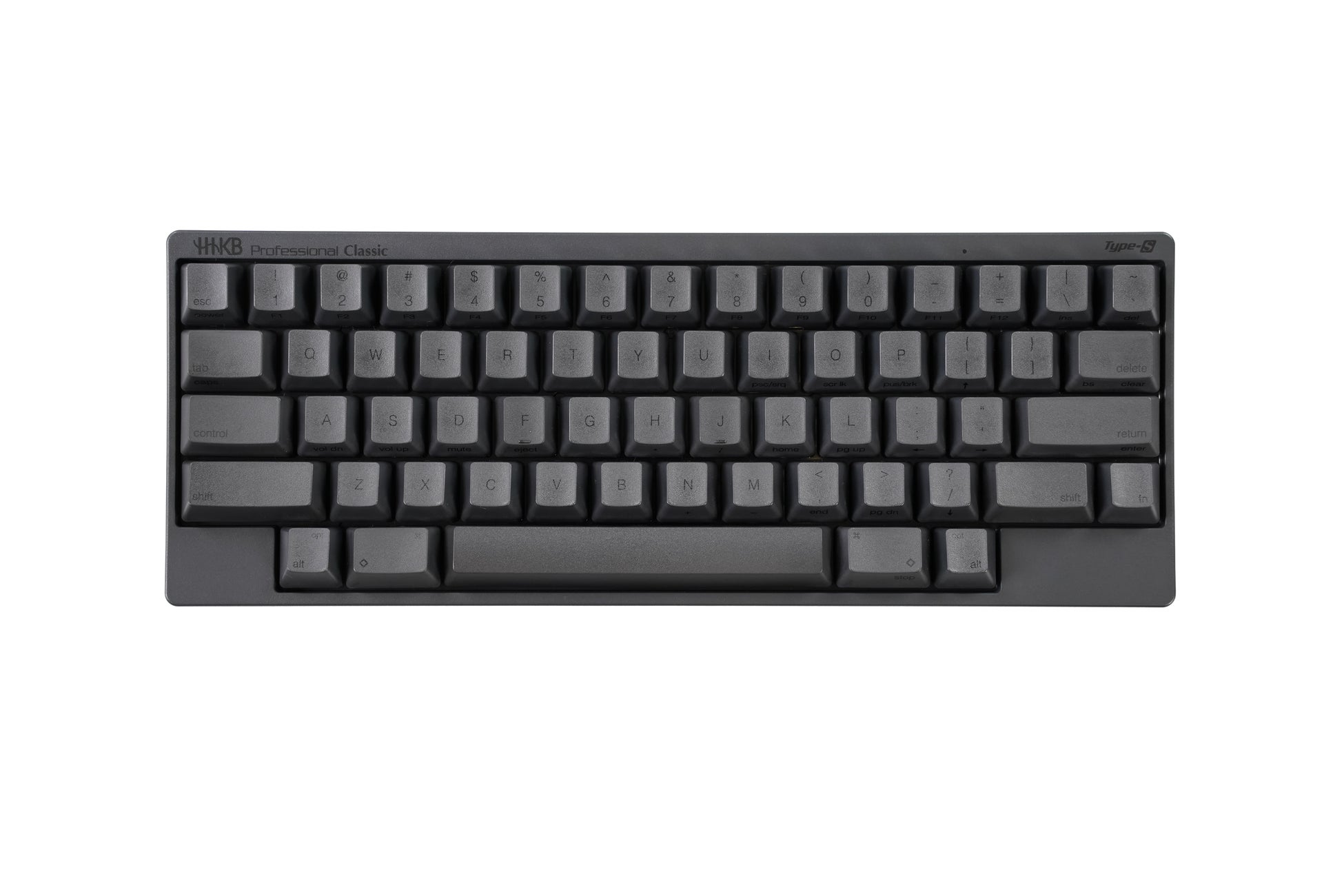 HHKB Professional Classic Type-Sは、最上位モデルと同じ「Type-S」キー構造を採用したUSB接続(Type-C)専用モデルです。初代モデルのフォルムをオマージュした電池不要のミニマルなデザインかつ、スタイリッシュな中央印字キートップを標準搭載。ユーザーの好みに合わせて使い勝手を高めることができるキーマップ変更ツールにも対応しています。
