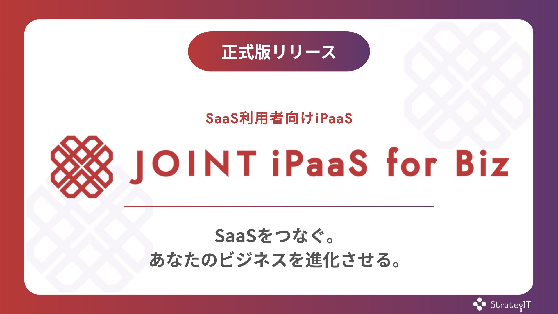 株式会社ストラテジット(本社:東京都港区、代表:加藤 史恵、以下「当社」)は、新プロダクトとして、SaaS利用者向けiPaaS「JOINT iPaaS for Biz」を正式にリリースいたしました。