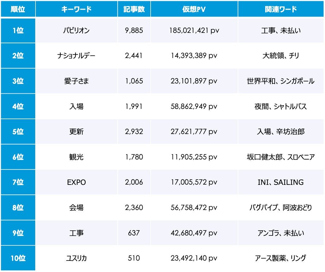 【Qlipperランキング】「大阪・関西万博」ウェブニュースランキング(2025年5月)