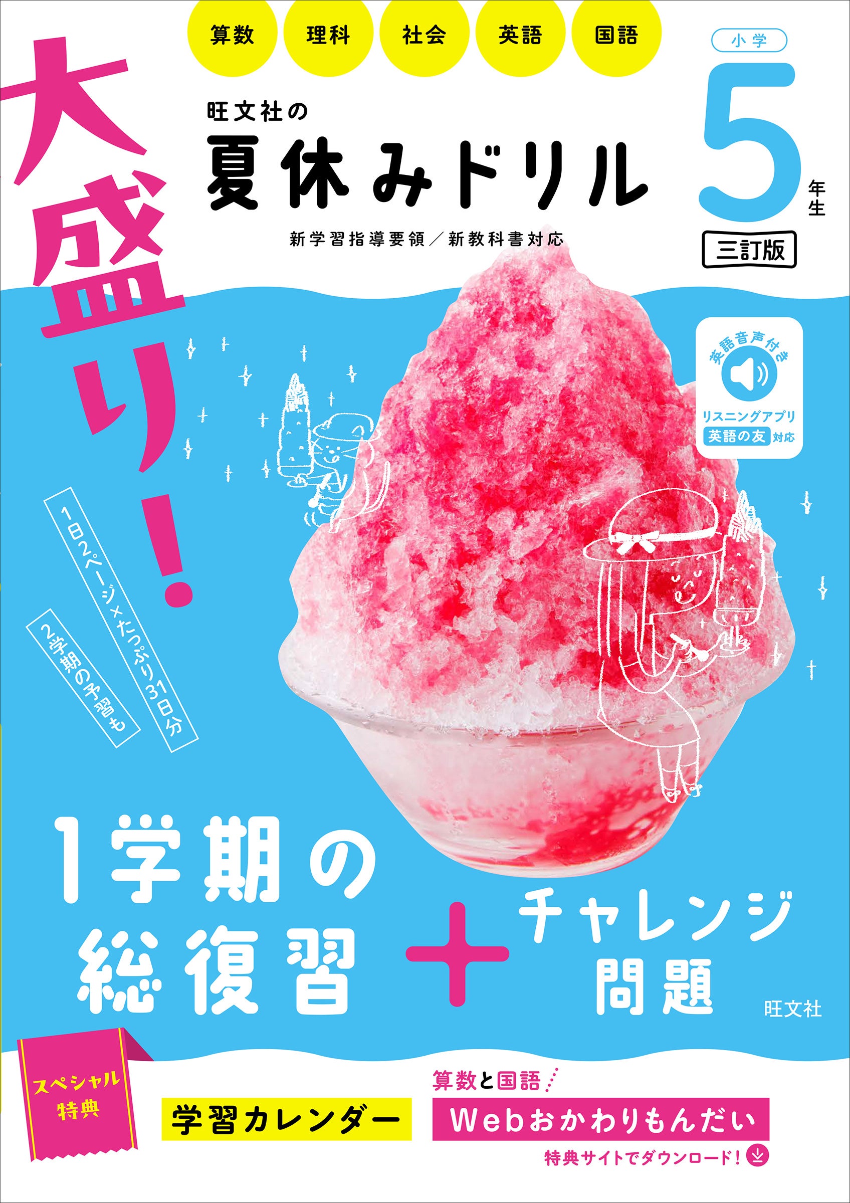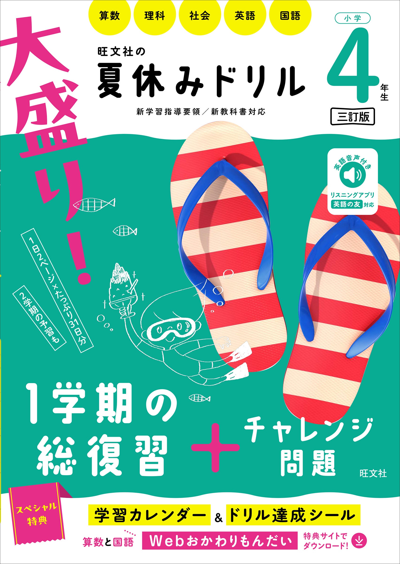 教育出版の株式会社旺文社(東京都新宿区、代表取締役社長 粂川秀樹)は、小学生向け「大盛り!夏休みドリル」シリーズの三訂版を6月7日(金)に刊行いたします。本シリーズは、1学期で習う内容の復習から2学期の予習までを1冊でできるドリルです。三訂版の刊行にあたり、新たにWEB特典として達成度の確認ができる「Webおかわりもんだい」がつきました(算数、国語のみ)。このシリーズは2020年度からの新学習指導要領、2024年度からの新教科書に対応しています。