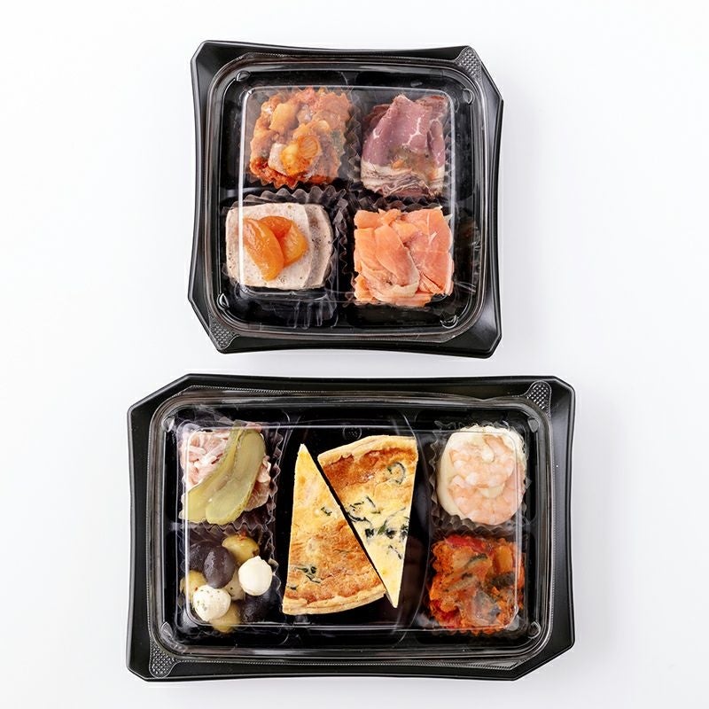 2種のキッシュ(スモークサーモン・ベーコン)をメインに、生ハムやラタトゥイユのセットとパテドカンパーニュやローストビーフなどのシャルキュトリーをメインとしたオードブルのセットです。