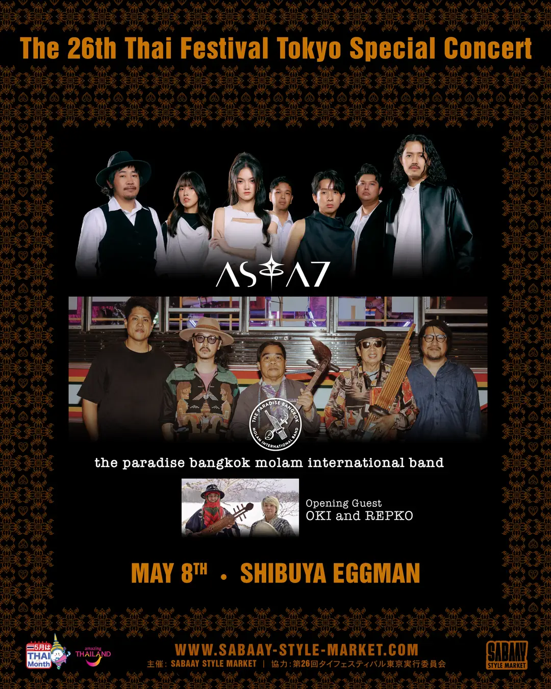 タイの伝統音楽をジャズやポップスと融合させたASIA 7と、世界中のフェスを席巻するモーラム・ユニットThe Paradise Bangkok Molam International Bandが登場。オープニングアクトには、アイヌの伝統弦楽器トンコリ奏者・OKIによるプロジェクト「OKI Rekpo」を迎え、アジアのルーツミュージックが共鳴する歴史的な一夜となります。