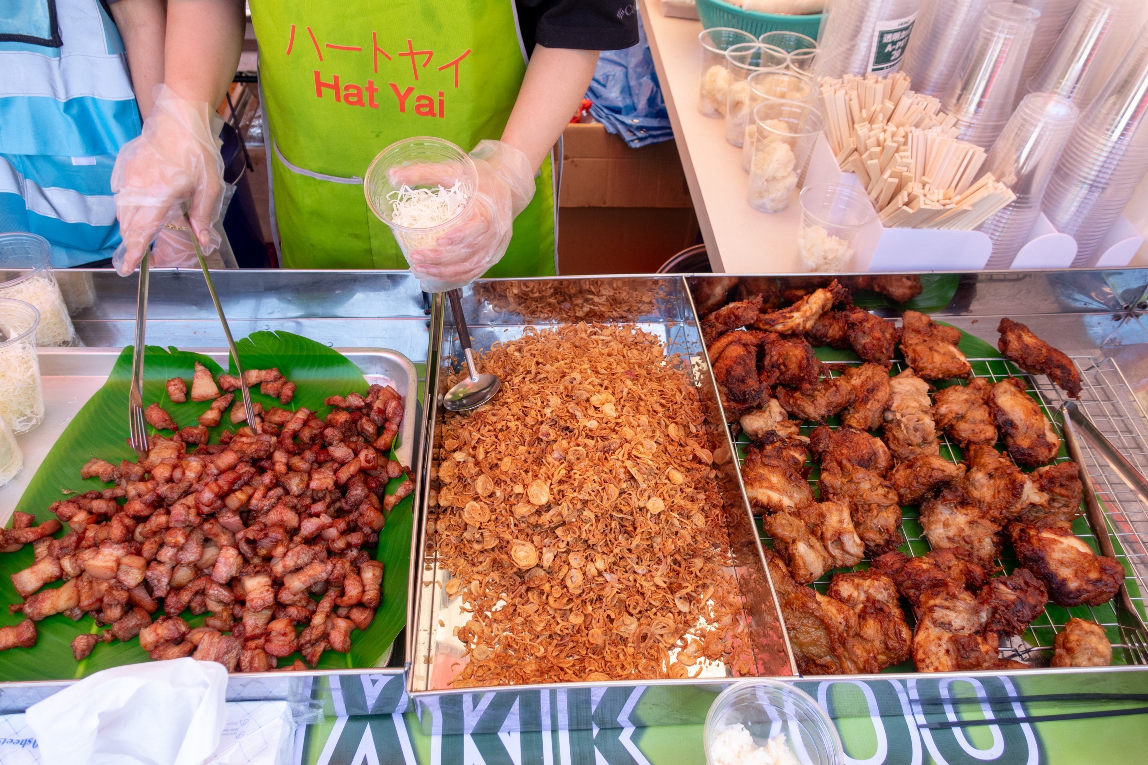 タイ好きの天国!タイフェスティバルでは、様々なタイ料理や物産品が販売されます。タイの生鮮果物や野菜、お米、カレーペースト、おなじみの調味料、ご家庭で簡単に、美味しいタイ料理が作れる食材などが揃っています。またタイティー、フルーツスムージー、クラフトビールなどのドリンクを味わったり、最新のファッションや服、タイシルクで作った現代風の服やタイパンツ、個性的なムエタイパンツ、手工芸品を買い物したり、ゆっくり会場を回ってお気に入りを見つけてください。