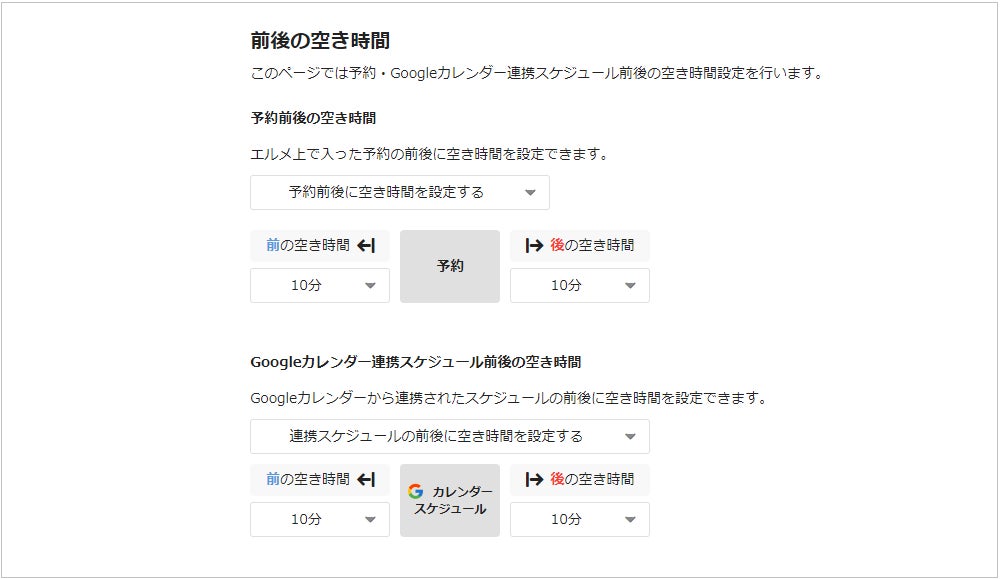 またGoogleカレンダーと連携することで、Googleカレンダーに入っているスケジュールの前後の空き時間も設定可能です。
