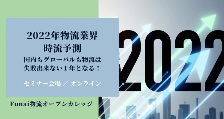 2022年1月20日(木)セミナー会場/2022年1月27日(木)-2月10日(木)オンライン にて、Funai物流オープンカレッジ2022年1月「2022年物流業界時流予測~国内もグローバルも物流は失敗出来ない1年となる!~」を開催します。