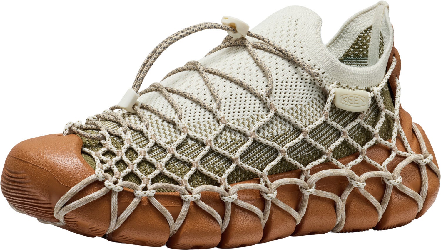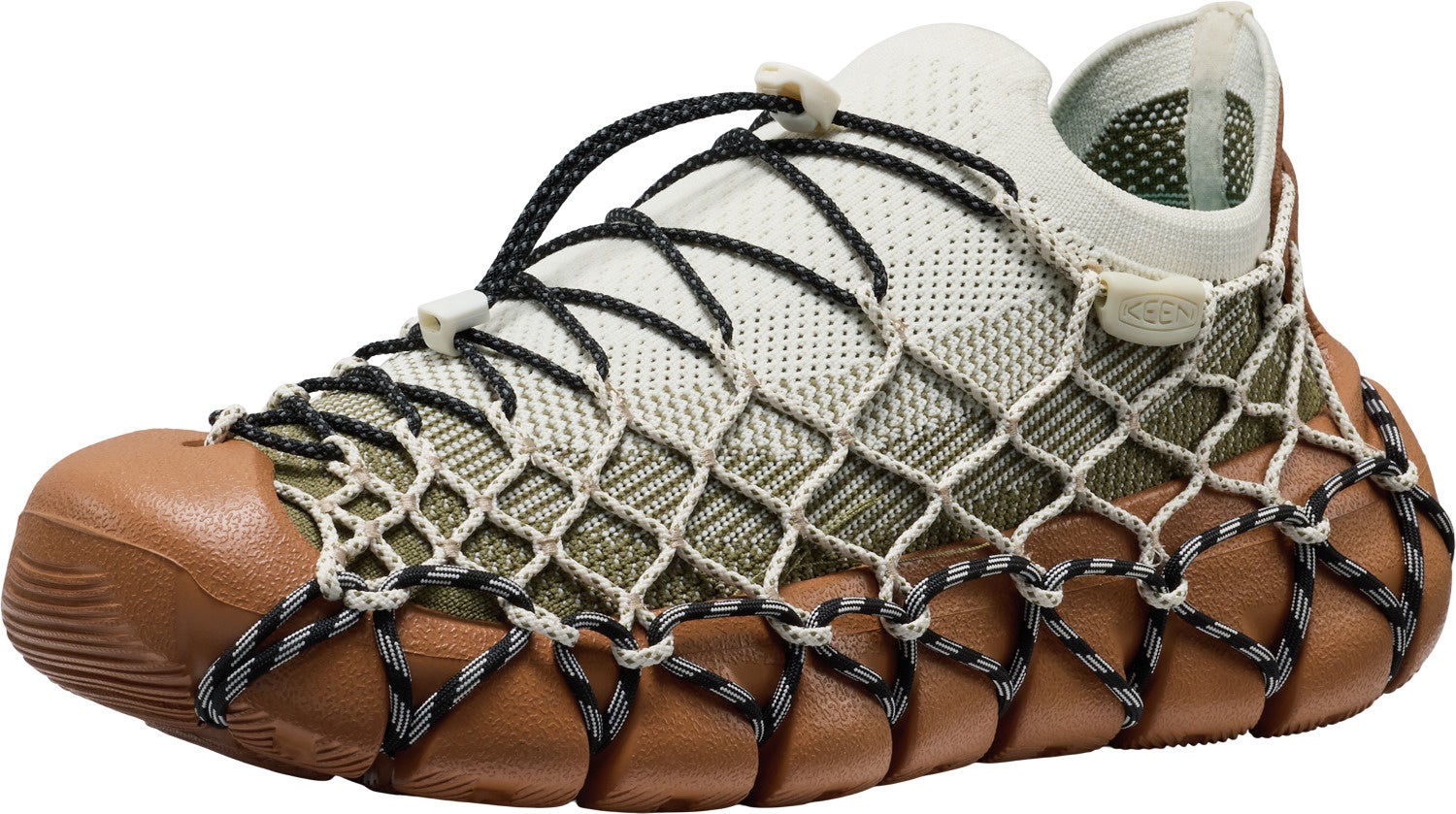 『UNEEK 360』は、素材選びから構造まで、靴全体が循環型デザインを前提として設計されています。リサイクルP.E.T. を用いた脱着可能なニットアッパー、可動式のコード、クッション性の高い EVA ソールユニットを採用。さらに、全ての KEEN のシューズと同じく、有害な抗菌剤に頼らない自然由来の防臭機能を備えています。これらの革新は、靴の未来に向けた重要なステップと言え、ブレイン氏は以下を加えた。