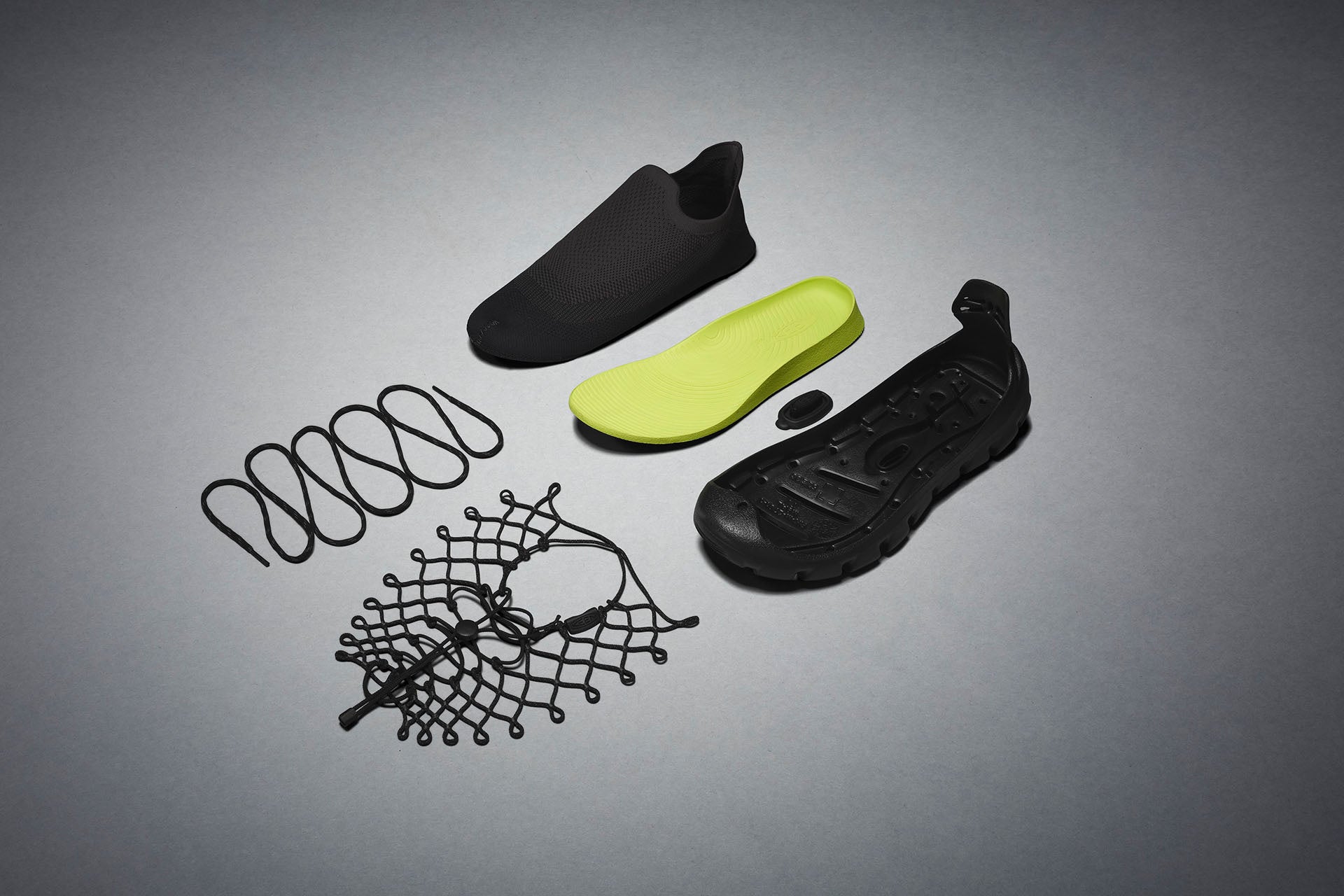 「「UNEEK」は常に既成概念を超え、靴作りの考え方を変えてきました。『UNEEK 360』では、「UNEEK」の象徴的な ”2本のコード” をさらに進化させ、接着剤ではなくコードでパーツを固定させるモジュラー構造を採用。これにより、有害な溶剤を製造工程から完全に排除しました。アッパーにはリサイクル素材を使用しており、役目を終えた後は分別できる設計です。」