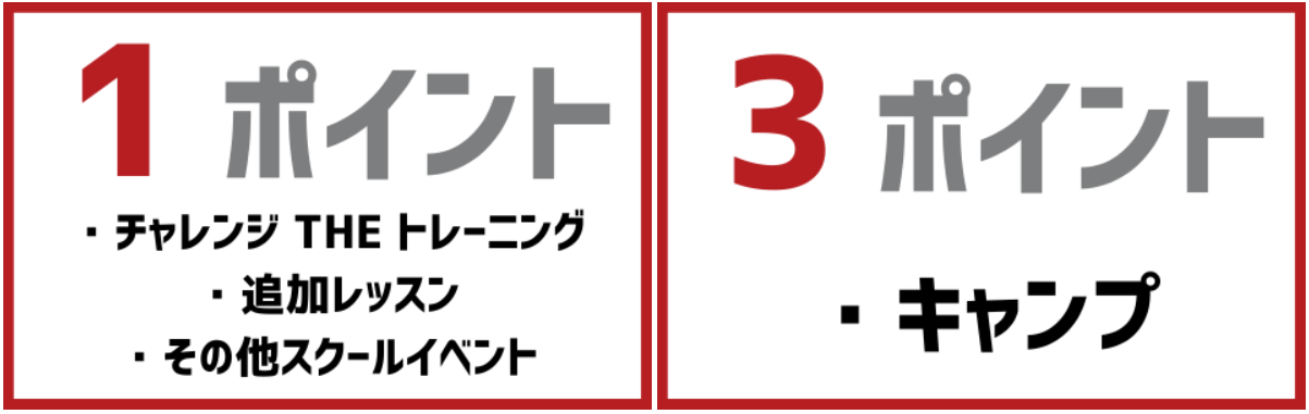 対象のプログラムにご参加いただき、ポイントを貯めると追加レッスン1回無料チケット(1,980円)をプレゼントいたします。