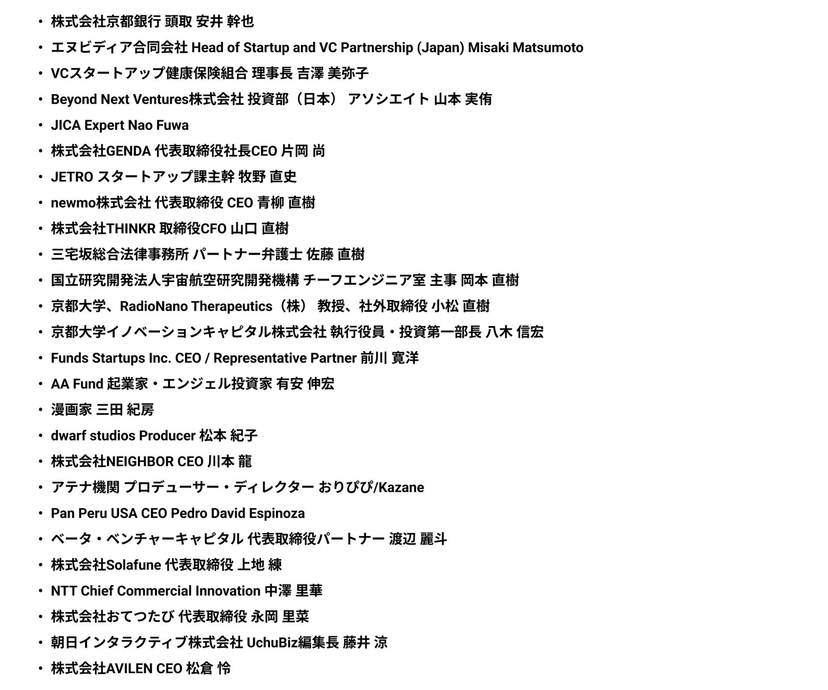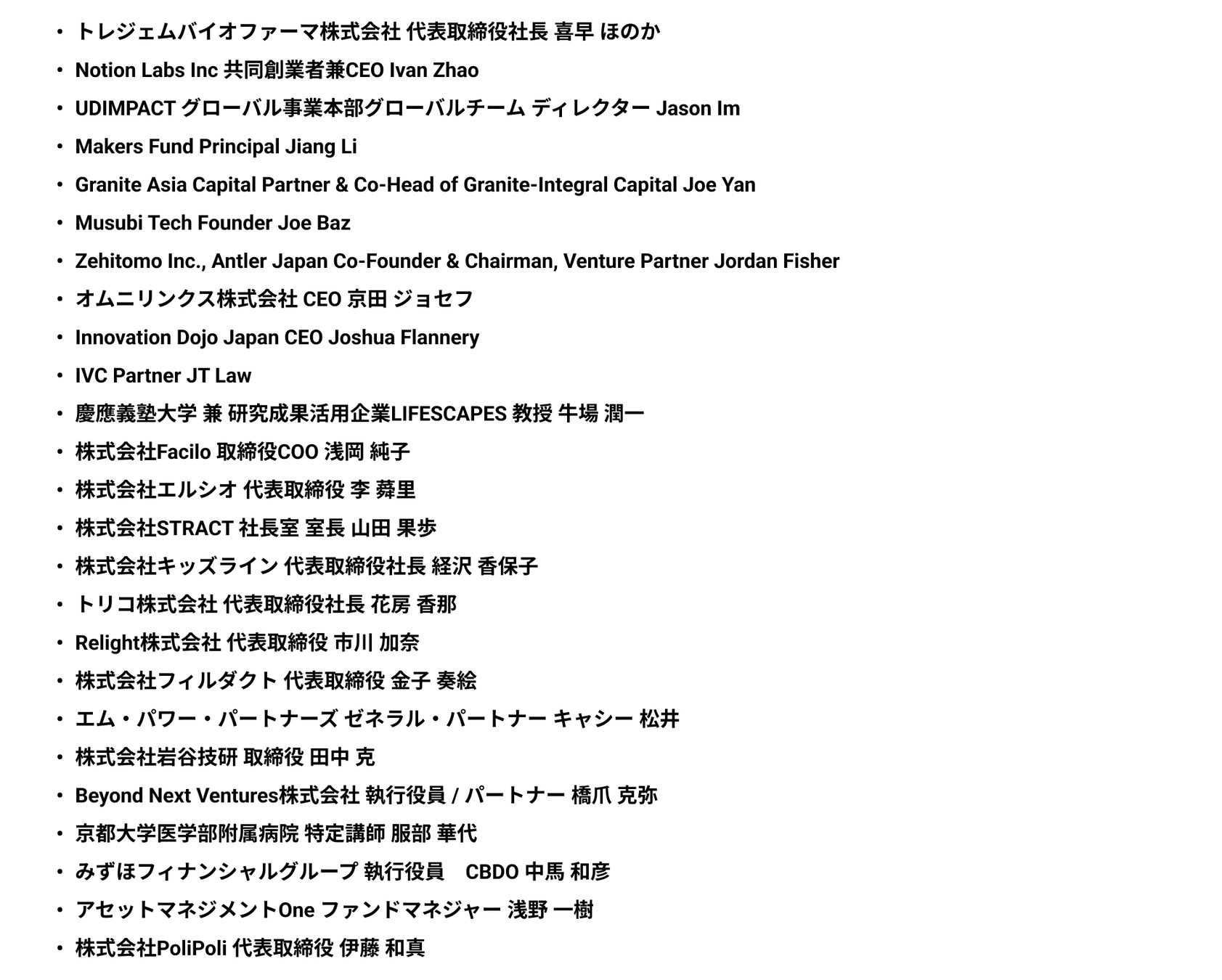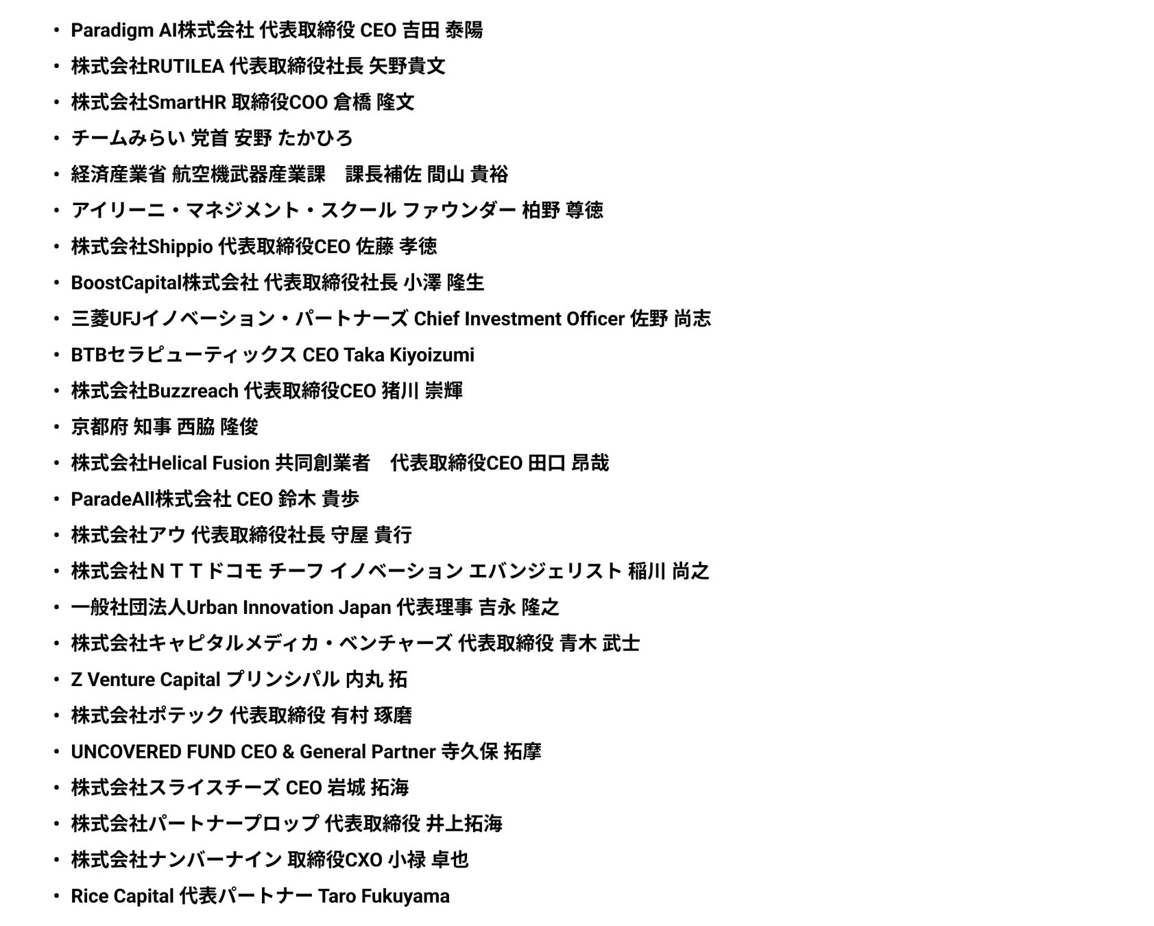 第一弾登壇者(敬称略・アルファベット順):