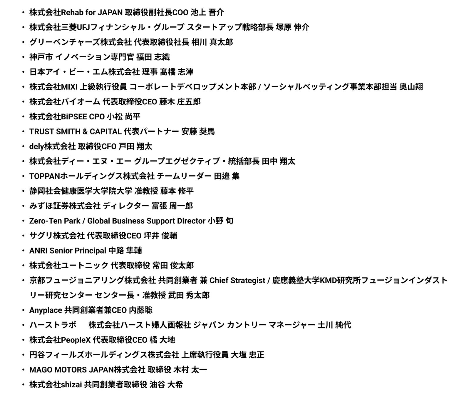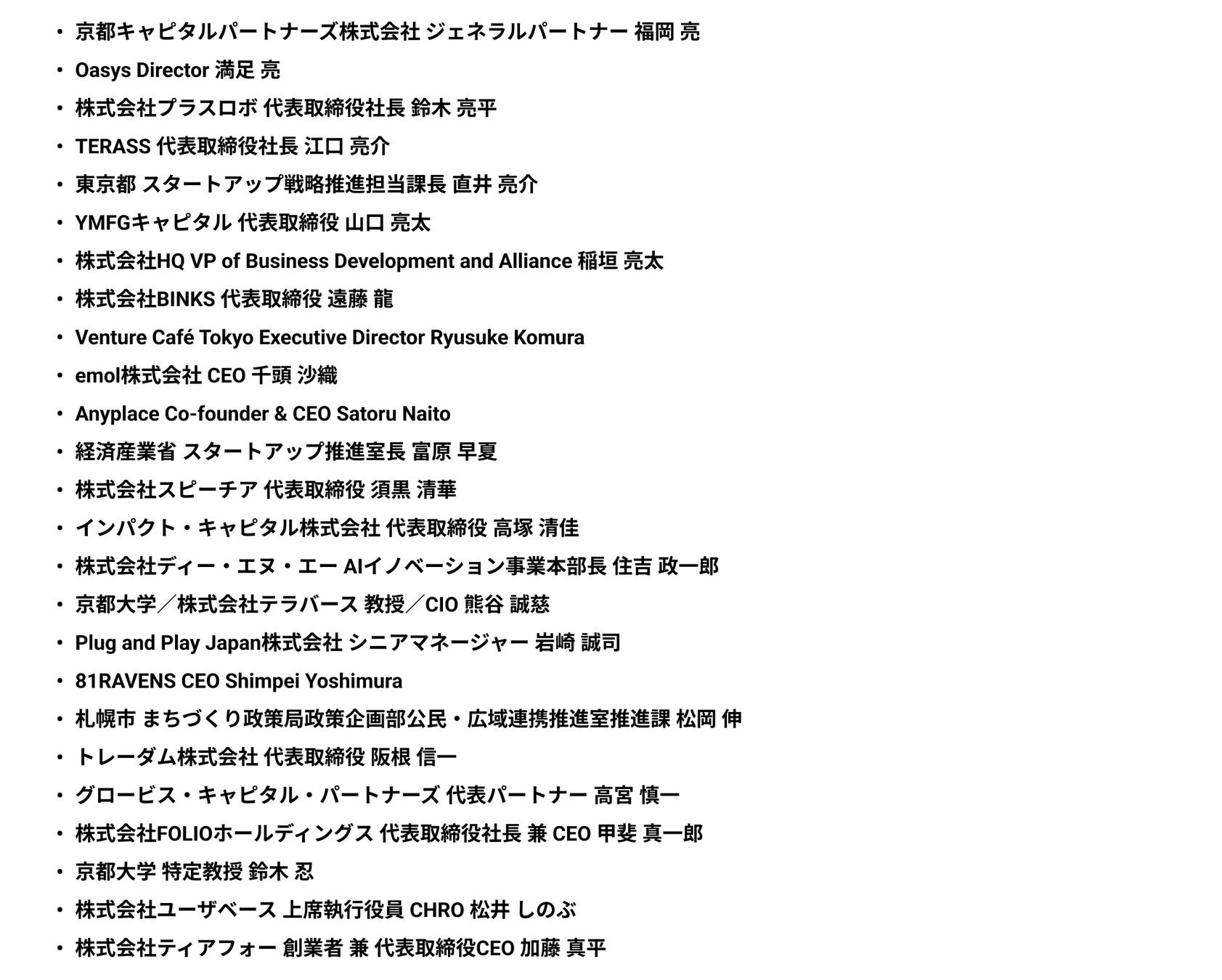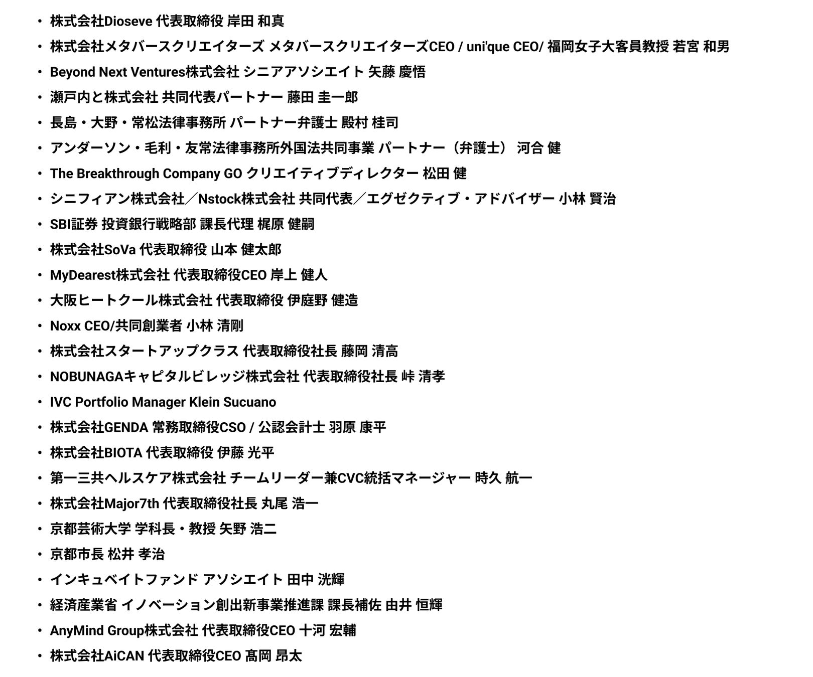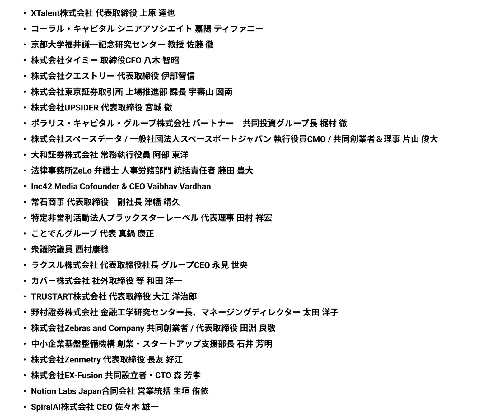 第一弾登壇者(敬称略・アルファベット順):