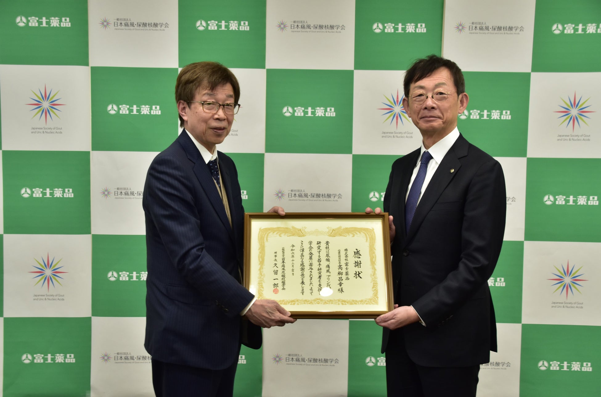 そしてこのたび富士薬品は、2025年2月19日(水)、高尿酸血症・痛風に関する学術機関である一般社団法人日本痛風・尿酸核酸学会(以下、日本痛風・尿酸核酸学会)の若手研究者支援事業(https://www.tukaku.jp/youngresearcher/)への寄附に対して、同学会より感謝状をいただきました。