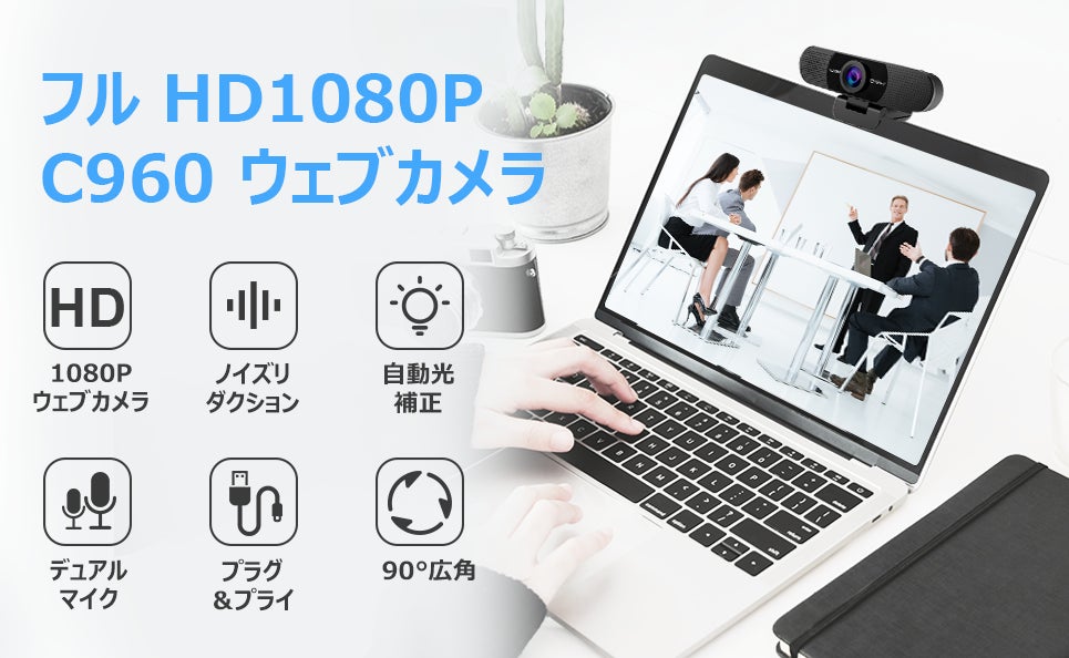 デュアルビルトイン全方向マイク付きwebカメラが、どの角度からでも明確な集音を保証できます。ノイズリダクション機能により、騒がしい環境でも、豊かな音声表現を実現できる。このWebカメラはオンライン会議で大活躍!
