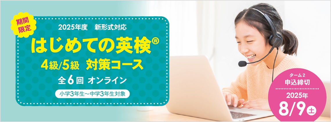 英会話教室を運営する株式会社イーオン(本社:東京都新宿区、代表取締役社長:重野卓、以下「イーオン」)は、10月5日(日)に行われる英検(R)に初めて挑戦するお子様に向けて、オンライン校のキッズクラスで「はじめての英検(R)4級・5級対策コース」を開講します。