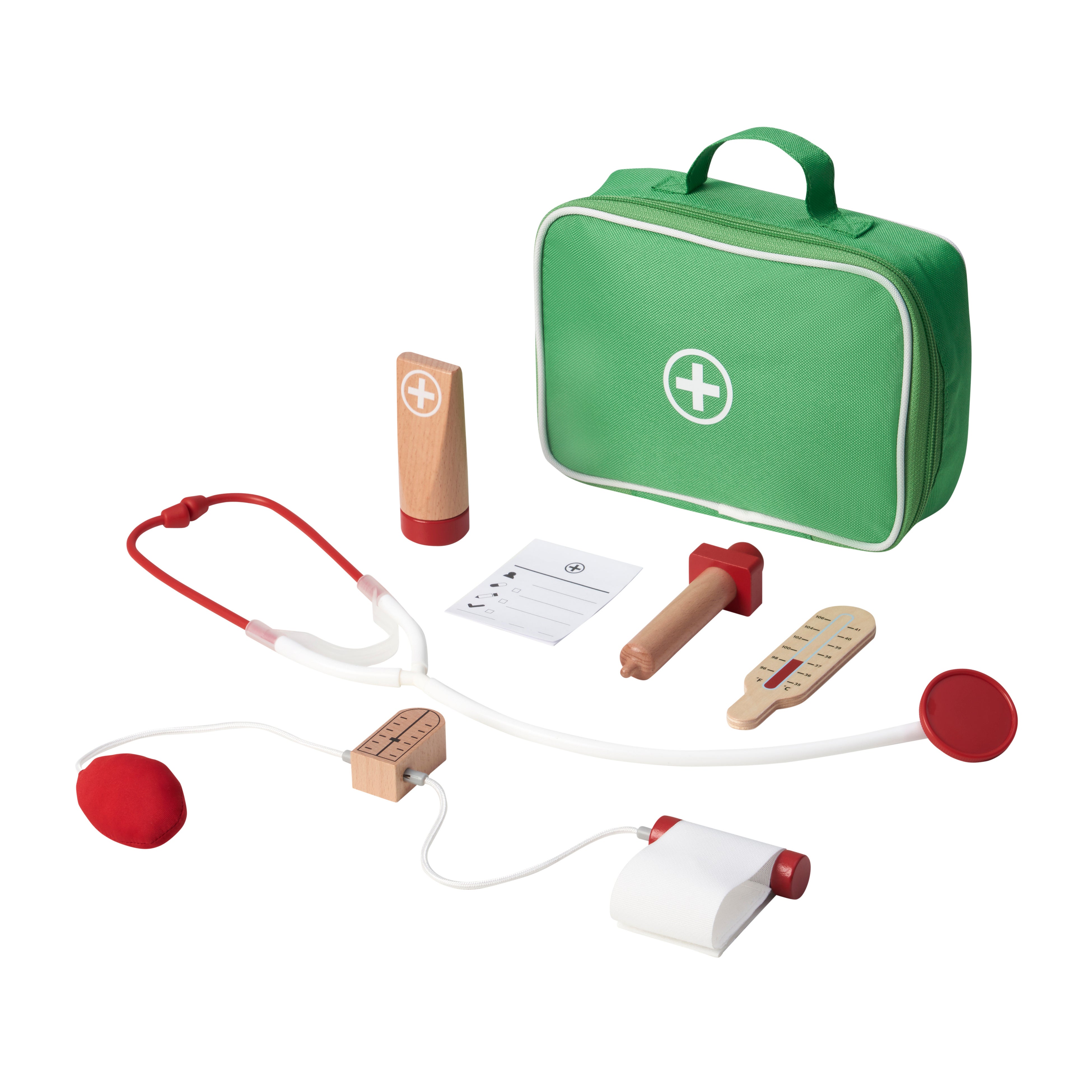 このおもちゃセットで遊べば、健康や医療機器、健康診断についての知識を増やせます。人のお世話をするのが好きで、将来の夢がお医者さまかもしれないお子さまにぴったりです。お医者さんと患者さんのごっこ遊びで、お子さまは共感力やコミュニケーションスキルを伸ばしたり、お子さまの運動能力の発達と、目と手の協調運動の発達を促したりという特徴があります。