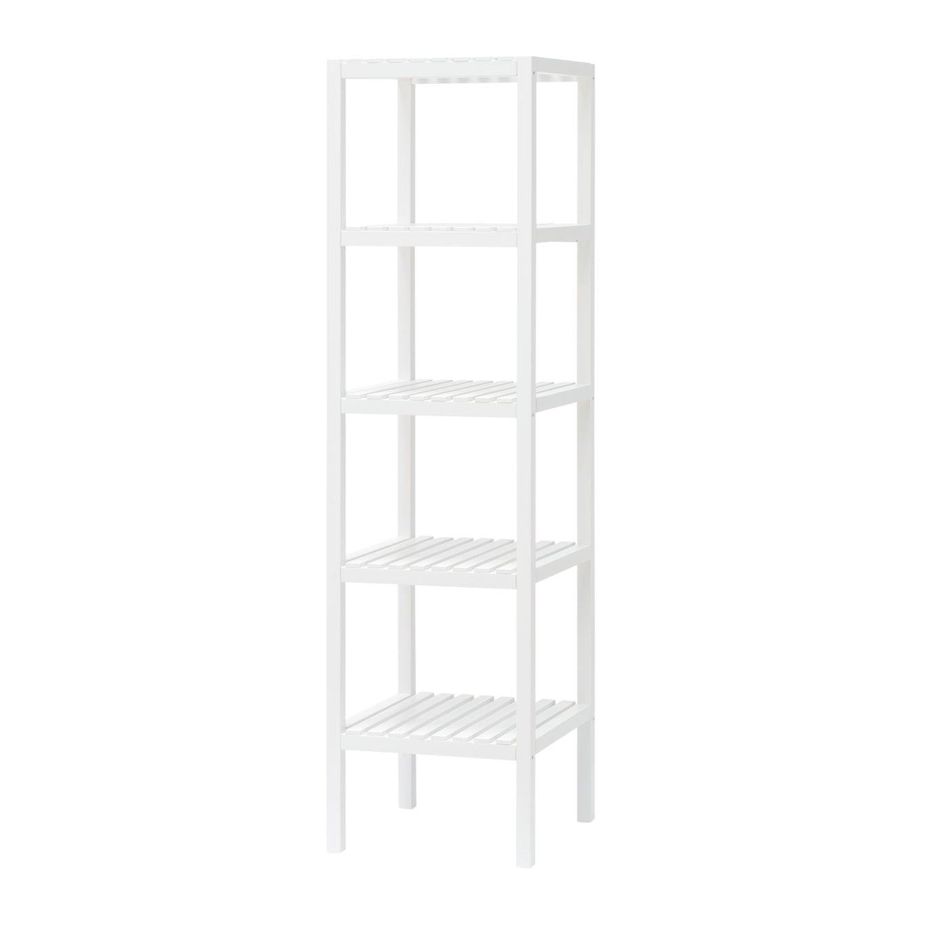 フロアスペースをほとんどとらない、オープンなシェルフユニット。タオルやボトル類からトイレットペーパーまでなんでも収納できます。ほかのアイテムとも合わせやすい、賢い収納ソリューションです。