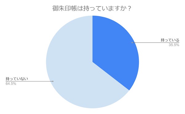 パワースポット巡りをしている方々に「御朱印帳は持っていますか?」とお聞きしたところ、「持っている」と答えた方が35.5%、「持っていない」と答えた方が64.5%と、持っていない方のほうがやや多い結果となりました。
