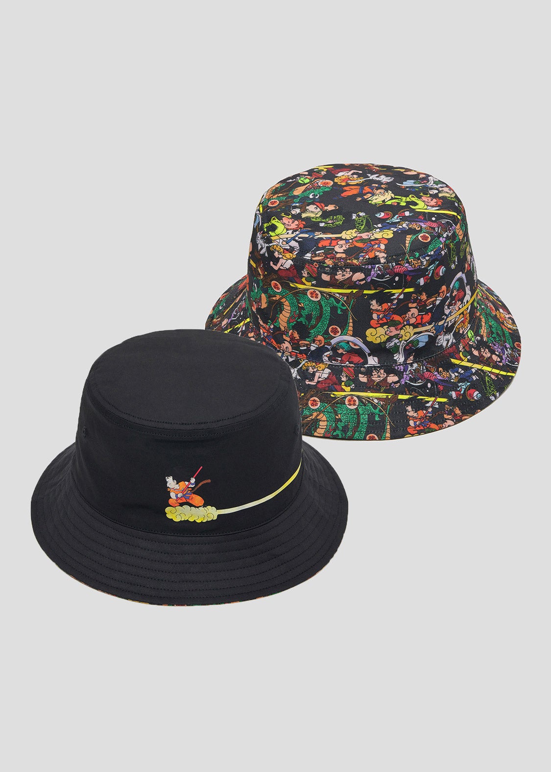 悟空やブルマ、クリリンに武天老師、カリン様など個性豊かなキャラクターたちのデザインが、Tシャツや半袖シャツ、ワンピース、トートバック、キャップなどに展開