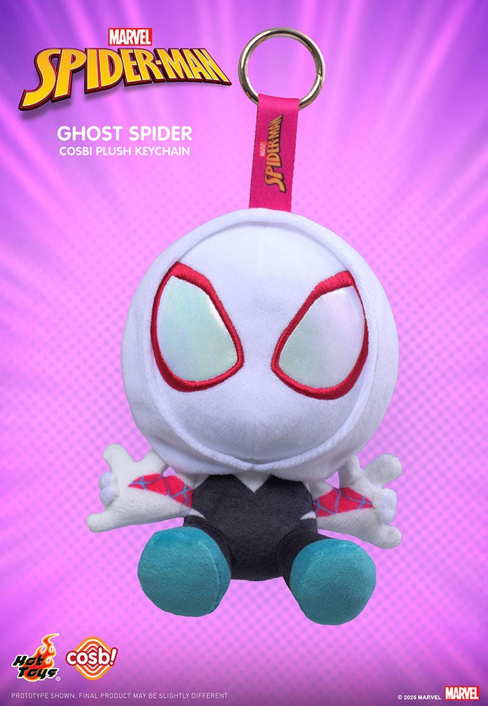 シンプルで愛らしいフォルムと集めやすいサイズが特徴的なデフォルメフィギュア「コスビ」シリーズのデザインをモチーフに、スパイダーマンの関連キャラクターたちをぬいぐるみ化!大きさは高さ約14cmで、キーチェーンとして使用できるストラップとリングがついている。