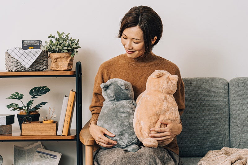 従来の湯たんぽのように熱湯を入れる手間もなく、繰り返し使えて冷めにくいエコで省エネな蓄熱式湯たんぽ。ふわっとした手触りと温もりが、本物の猫のようにかわいらしい冬のアイテム。