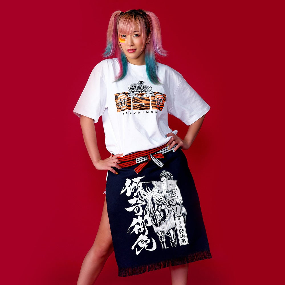 「傾奇御免」の書をデザインした何にでも合わせやすい着心地なめらかなシャツ。
