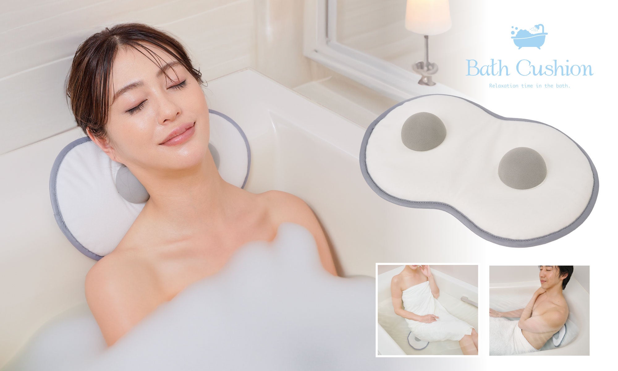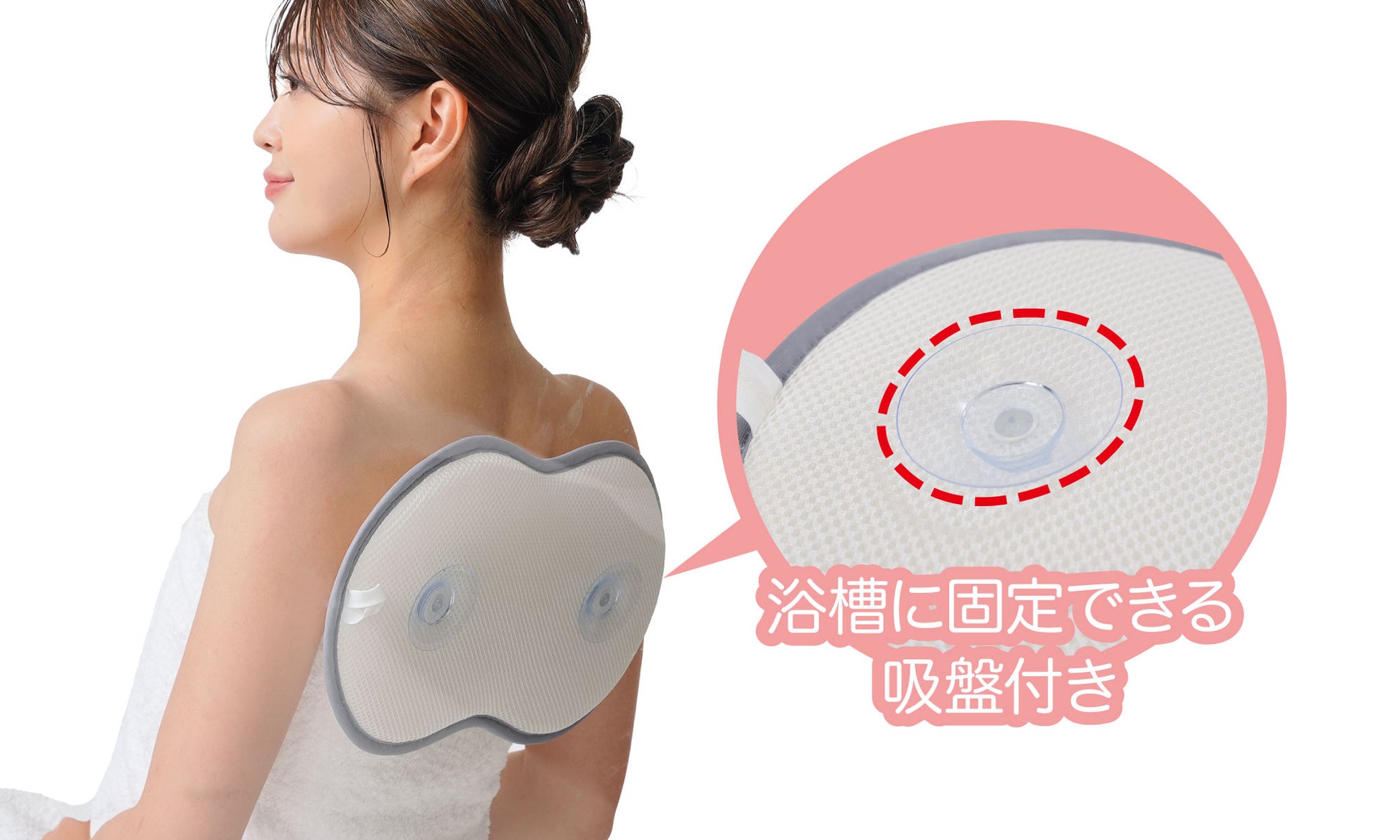 「コリほぐしバスクッション」はお風呂専用のクッションです。ほどよい硬さの2つの「ほぐしボール」がグイッと筋肉のコリにアプローチ!