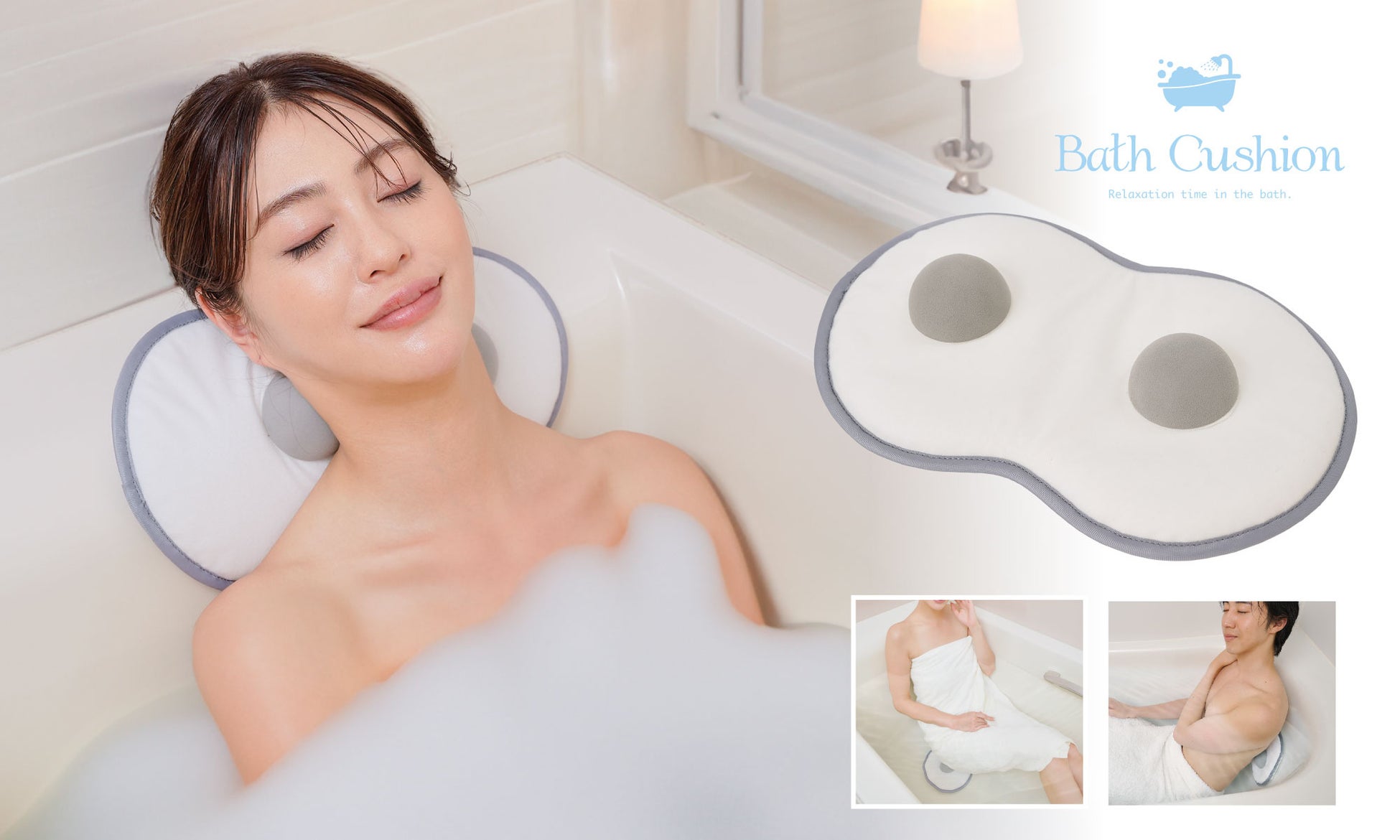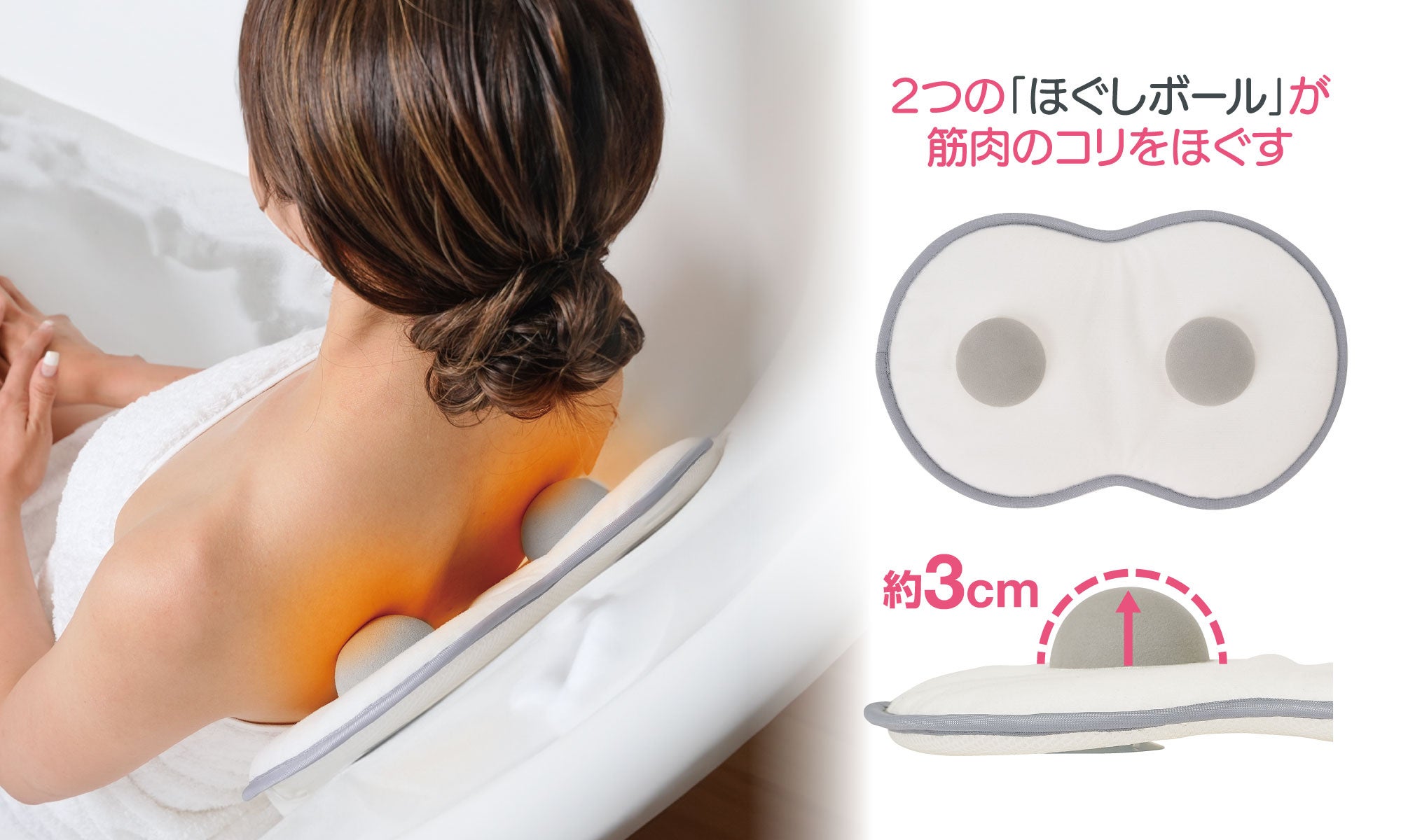 温浴効果とボールの指圧、ダブル効果でコリをほぐすバスクッション