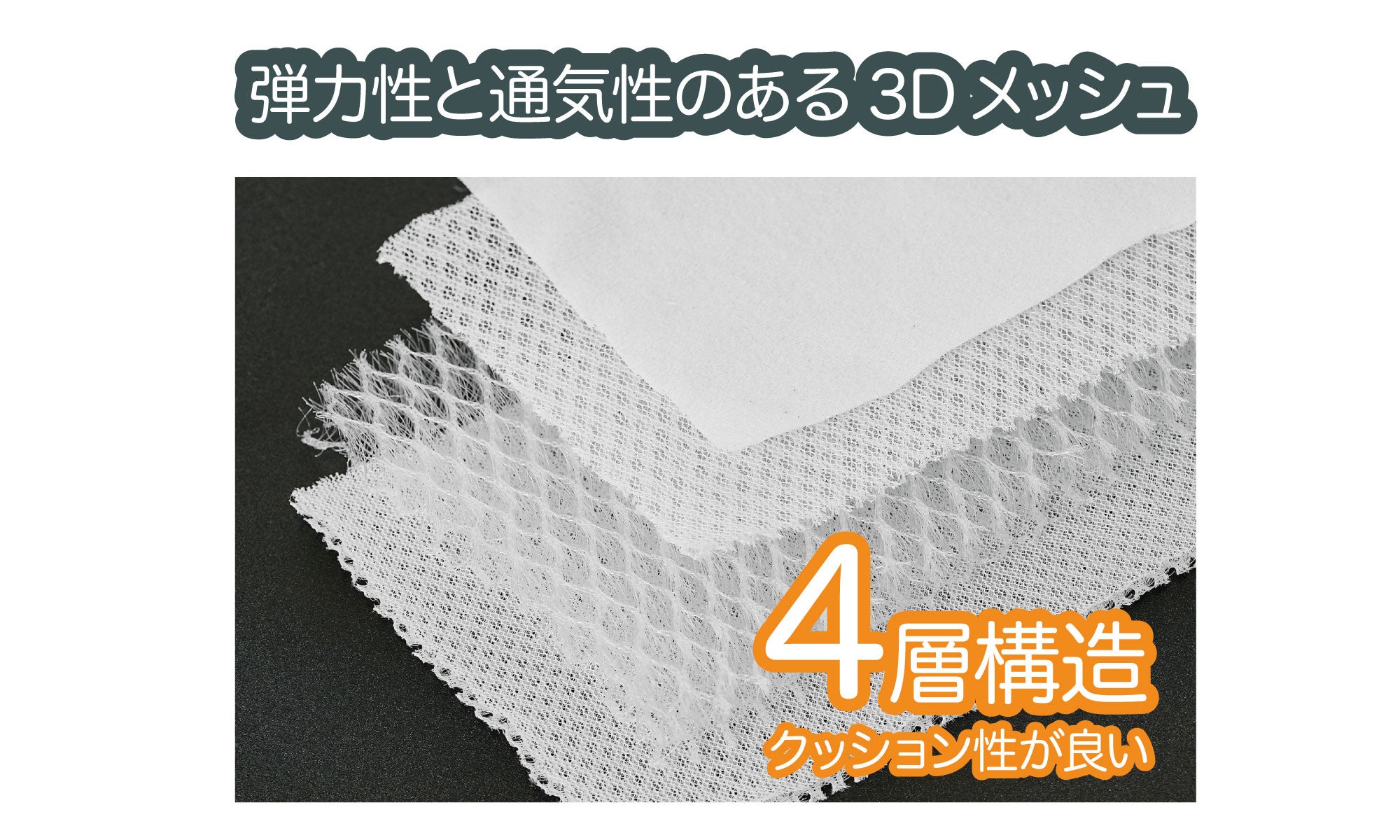 「コリほぐしバスクッション」の表面は肌ざわりが良く、中材には弾力性と通気性に優れた3Dメッシュを使用♪