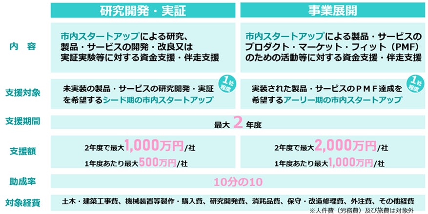 本事業は、市内スタートアップの研究開発・実証、事業展開に対する資金支援・伴奏支援を行う