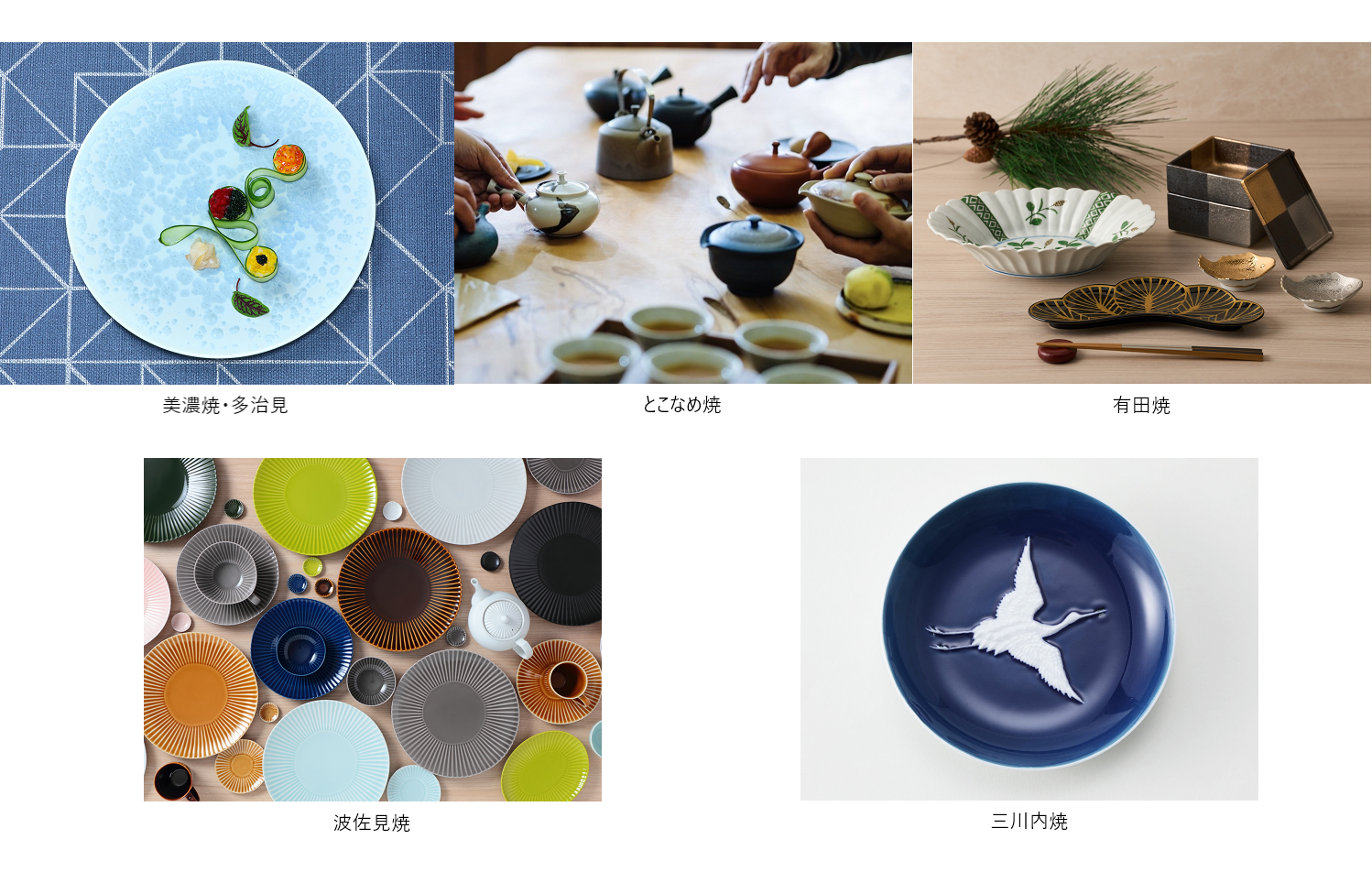 日本を代表する陶磁器産地から特色ある人気の器が一堂に集合。作り手との会話と共にお買い物もお楽しみいただけます。今回は、以下の5産地が出展します。