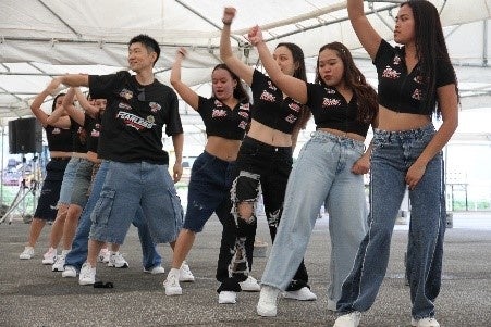 ○×クイズは、ニシキヤキッチンについてや地元についてのクイズが中心で、優勝者の方にはレトルト食品が12商品入った約5,600円相当のセットがプレゼントされました。実習生達は、プロ顔負けのダンスで場を盛り上げました。