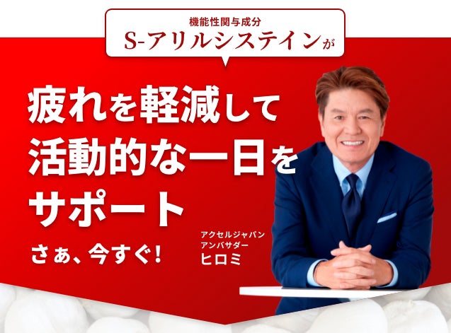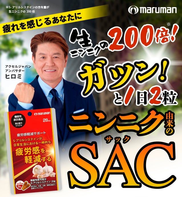 マルマンH&B株式会社(本社:東京都千代田区、代表取締役社長:溝田 勝彦)は、2023年9月1日(金)より全国のドラッグストアなどに向け発売中の機能性表示食品「疲労感軽減サポート」のプロモーションに、アクセルジャパンアンバサダーのヒロミさんを起用いたしました。