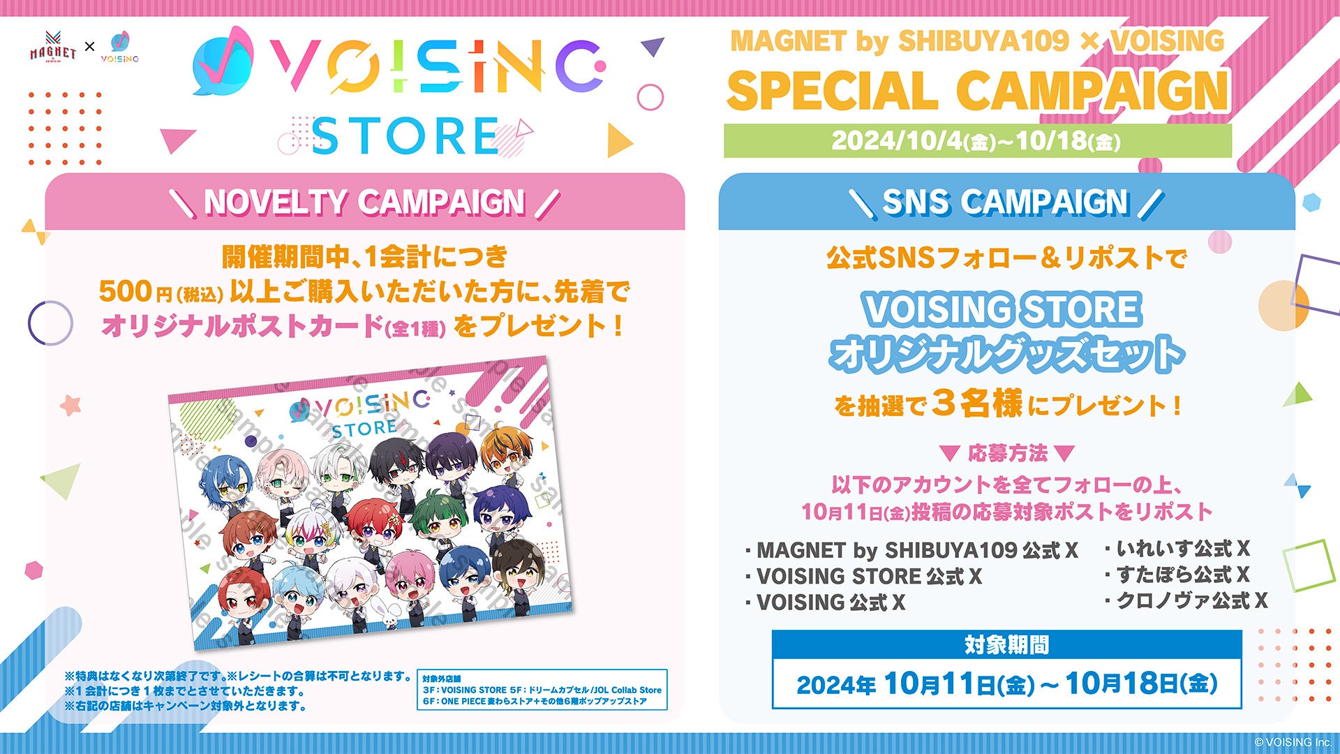 また、『VOISING STORE』のオープンを記念して、ノベルティキャンペーンやSNSキャンペーンを盛り込んだ「MAGNET by SHIBUYA109 × VOISING SPECIAL CAMPAIGN」を実施いたします。