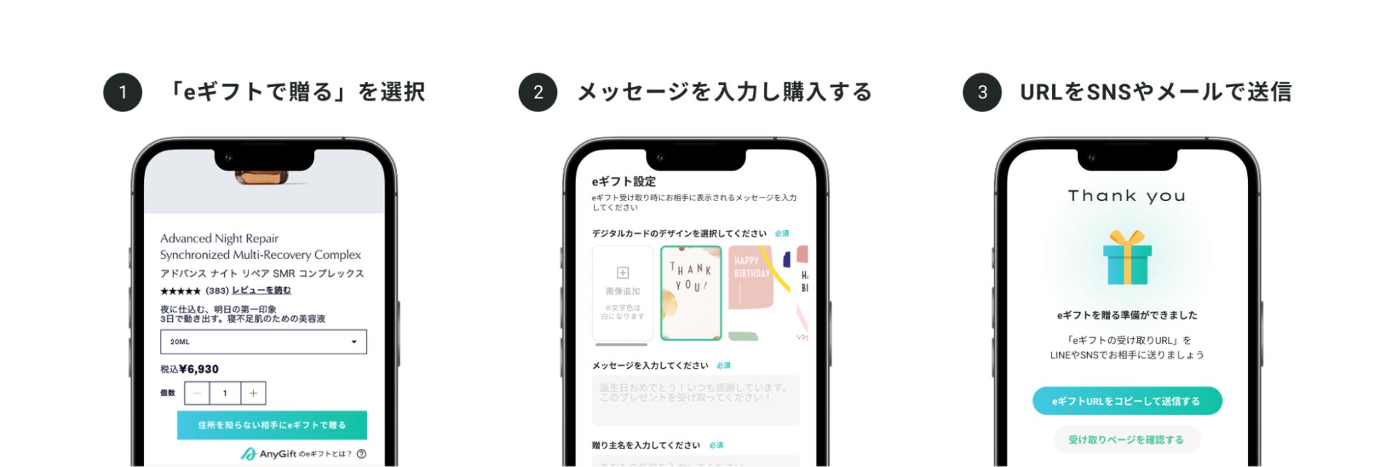 今回のAnyGiftの提供により、「エスティ ローダー公式オンライン ショップ」にてeギフトが贈れるようになります。