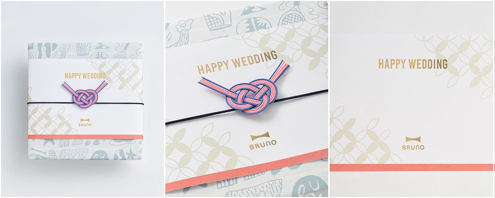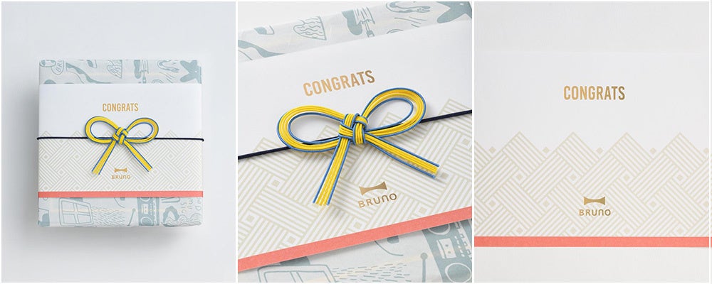 BRUNOが新たに提案するオリジナル水引きラッピングは、日本の伝統的な結びの文化にBRUNOらしい遊び心を掛け合わせた、華やかで記憶に残る特別な仕様。それぞれのデザインには贈る相手やシーンに応じた縁起の良い意味が込められており、大切な人へのギフトをいっそう印象的に演出します。