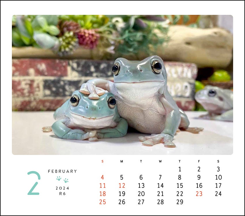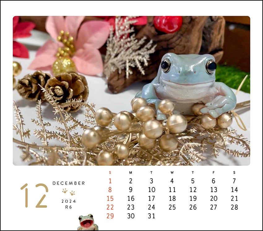 いつもカエルたちを応援してくださり、ありがとうございます。可愛いカエルたちの写真がたっぷりのカレンダーで、皆さんの1年が楽しくなりますように。