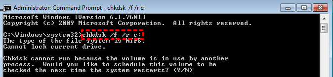 3、コマンド「chkdsk /f /rc:」を入力して実行します。