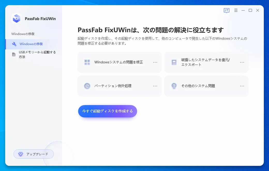 1、正常に作動するパソコンにPassFabFixUWinをダウンロードして起動します。