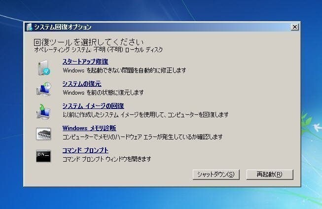 起動に不可欠なプログラムのブートセクタに不具合があるとスタートアップ修復ができないことがあります。