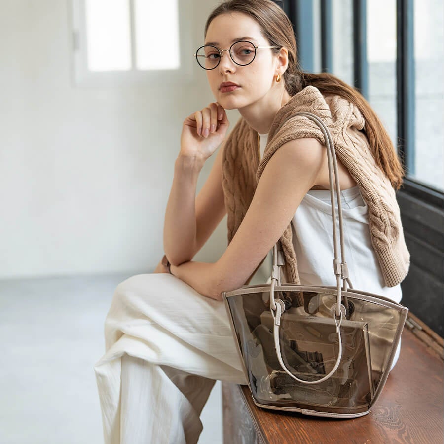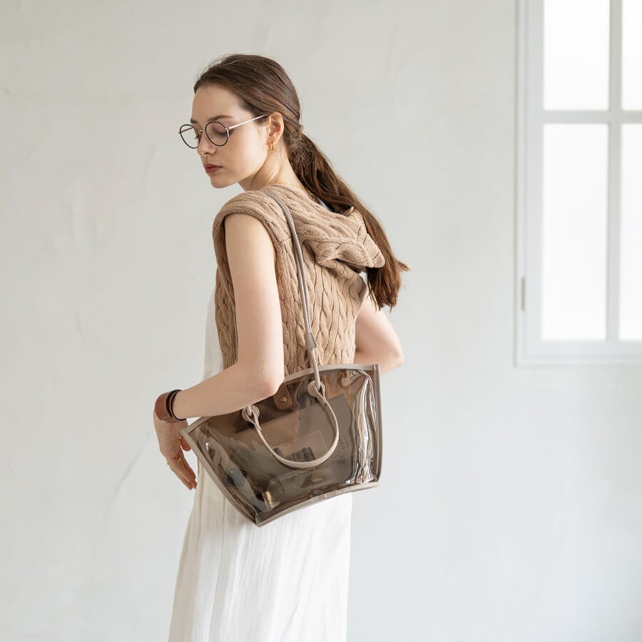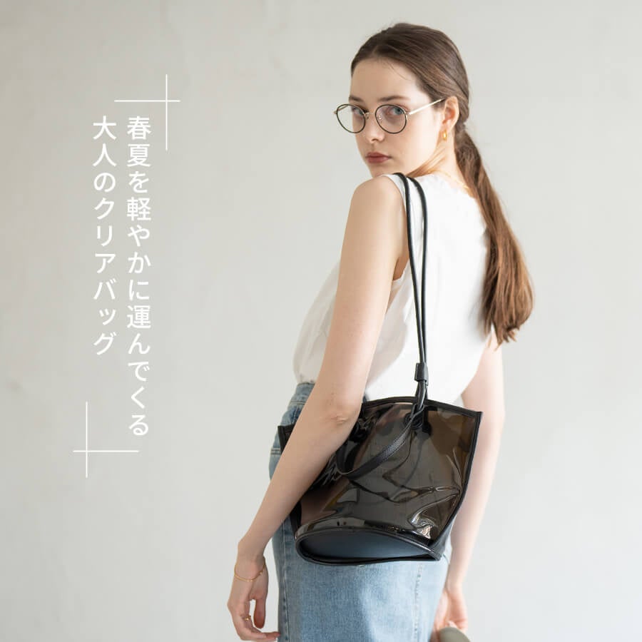 春夏の華やかな陽光に映える大人のクリアバッグ。