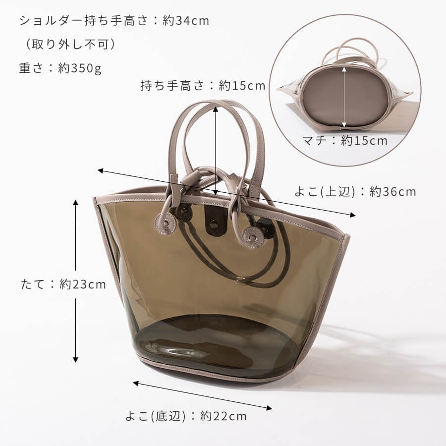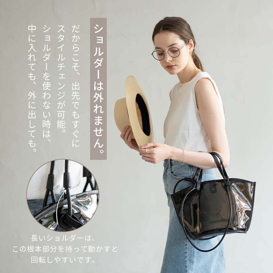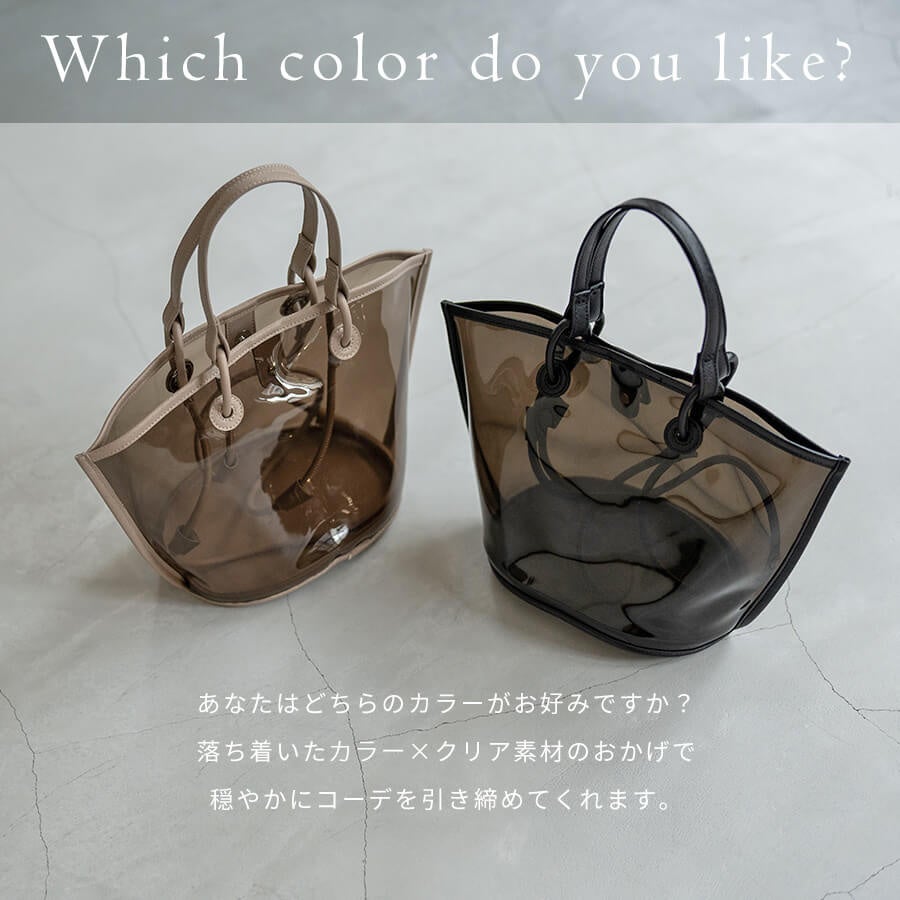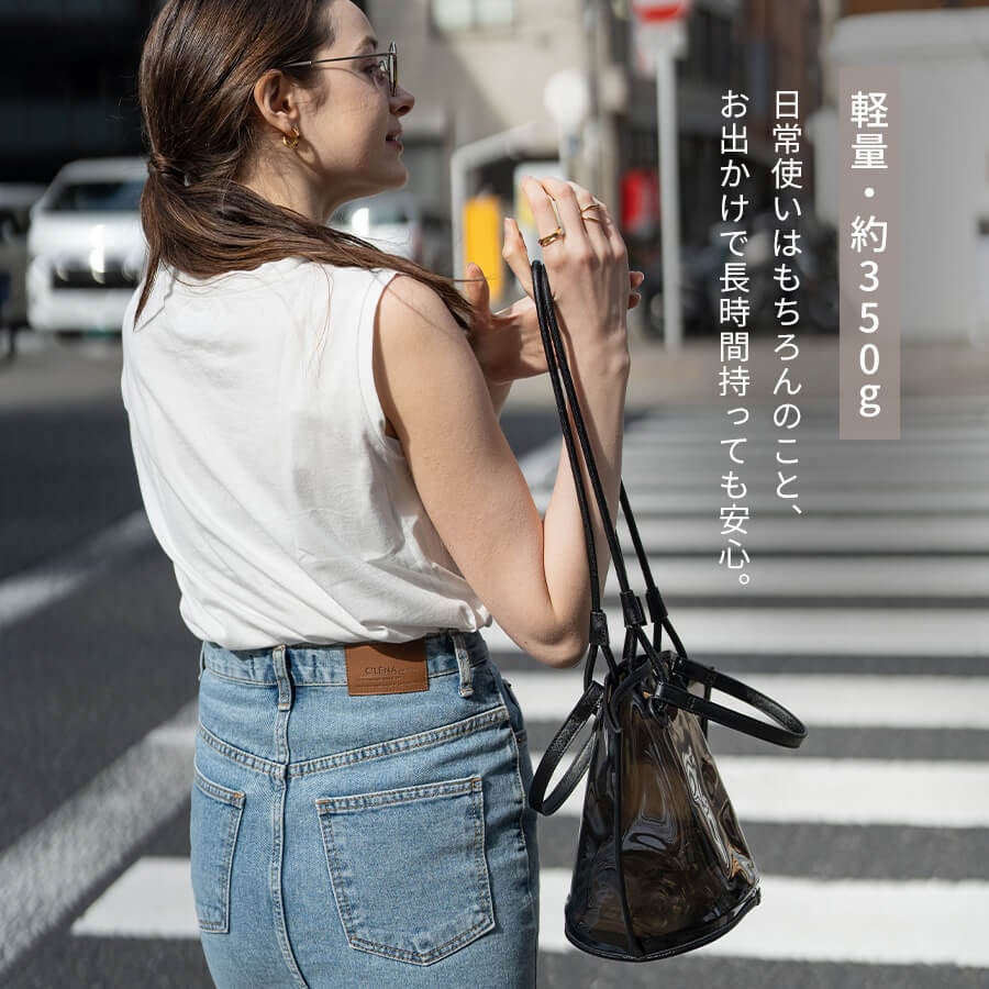 子どもっぽくなりがちなクリアバッグも、大人の魅力に。