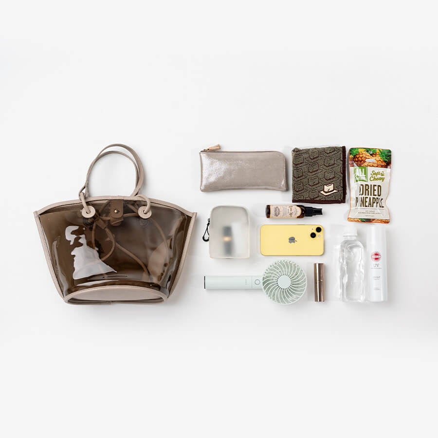 あえてバッグの中身を見せるクリアバッグならではの楽しみはそのままに、