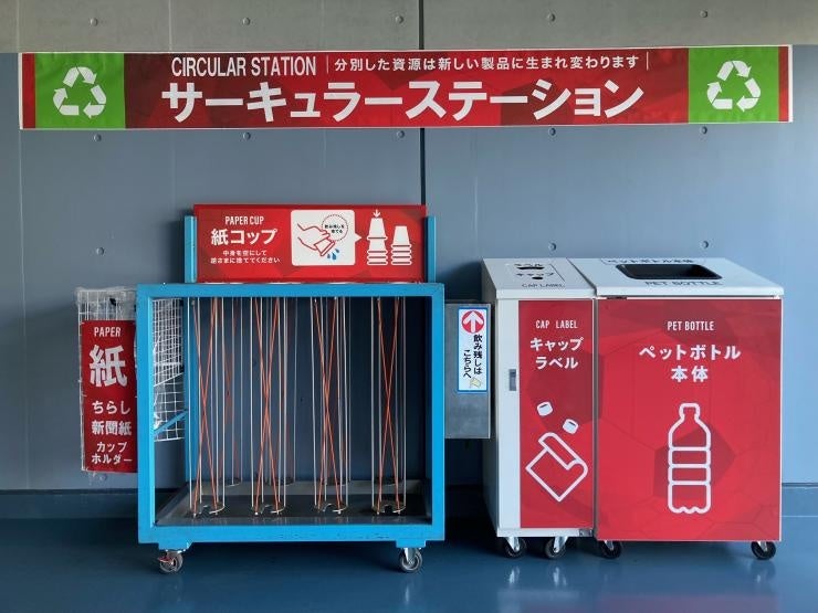 スタジアム内コンコースに分別エリア『サーキュラーステーション』を設置しました。(コカ・コーラ ボトラーズジャパン(株)デザイン協力)これにより、ペットボトルなどの資源の分別を更に進めます。