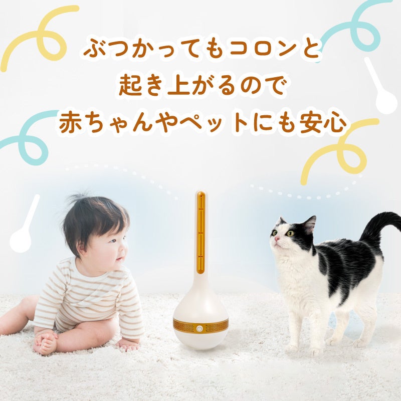 重心が土台の球体部分にあり、転倒するような衝撃が加わってもそのまま自動で起き上がります。