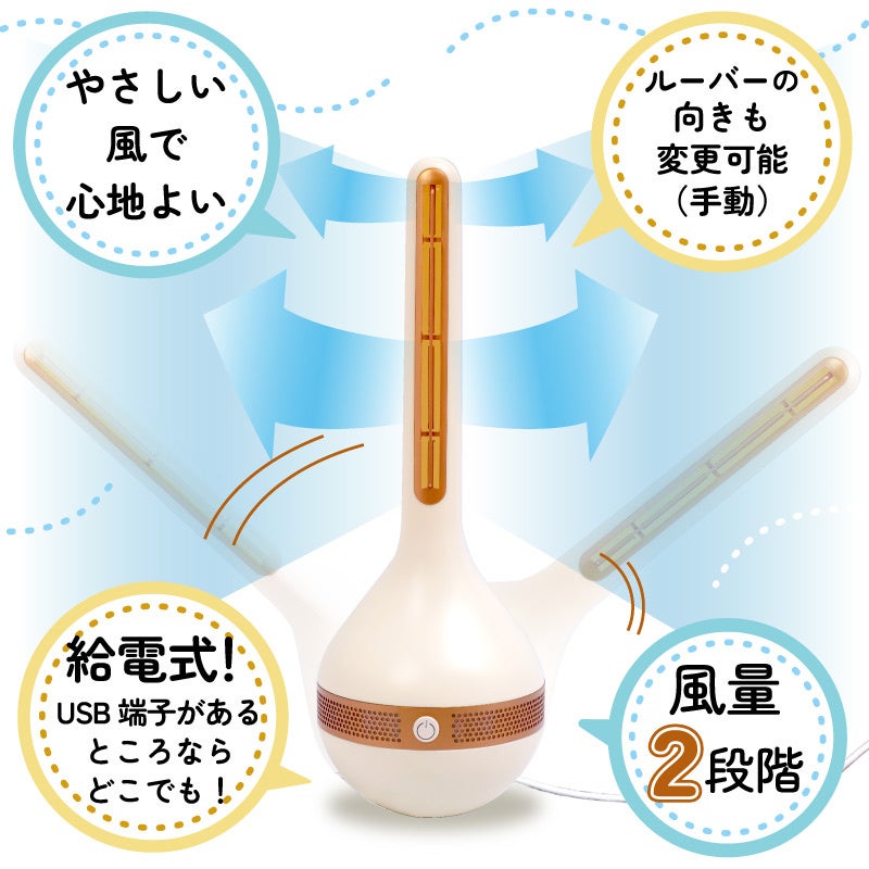 本製品は万が一の際にも転倒しないUSB式の扇風機です。