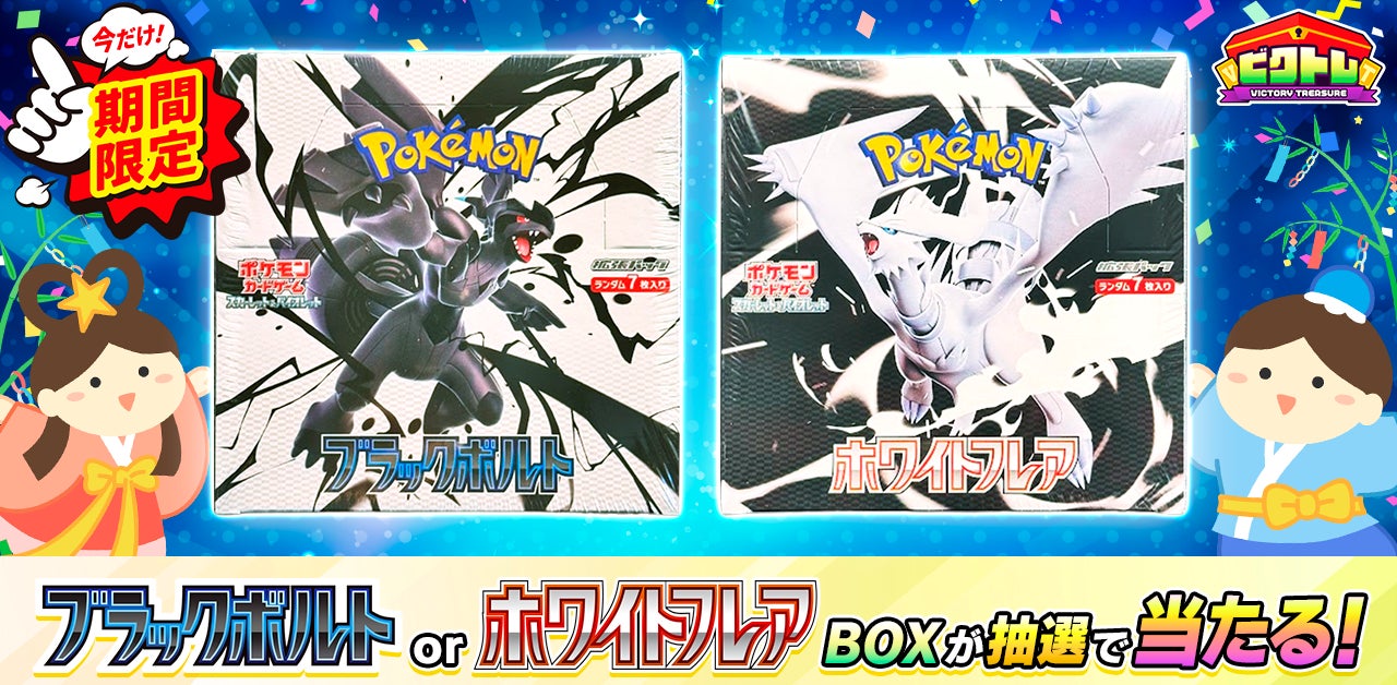 決済された方の中から抽選で、ポケモンカードゲーム最新弾の「ブラックボルト」「ホワイトフレア」のボックスがそれぞれ1名様に当たるキャンペーンを実施中です!
