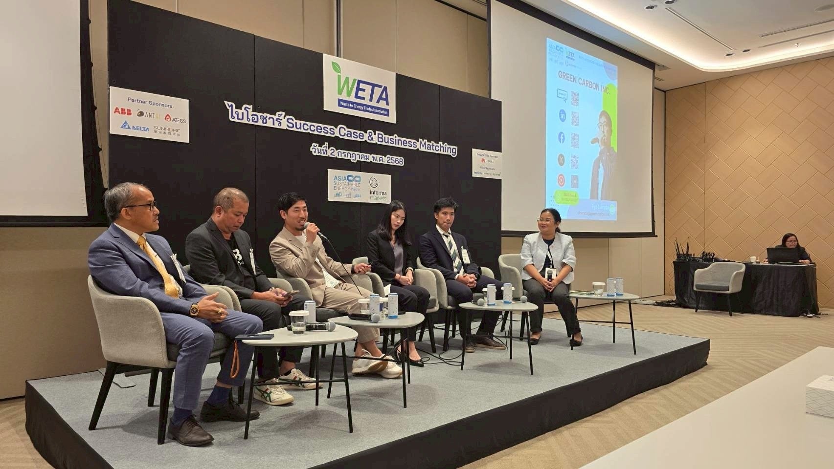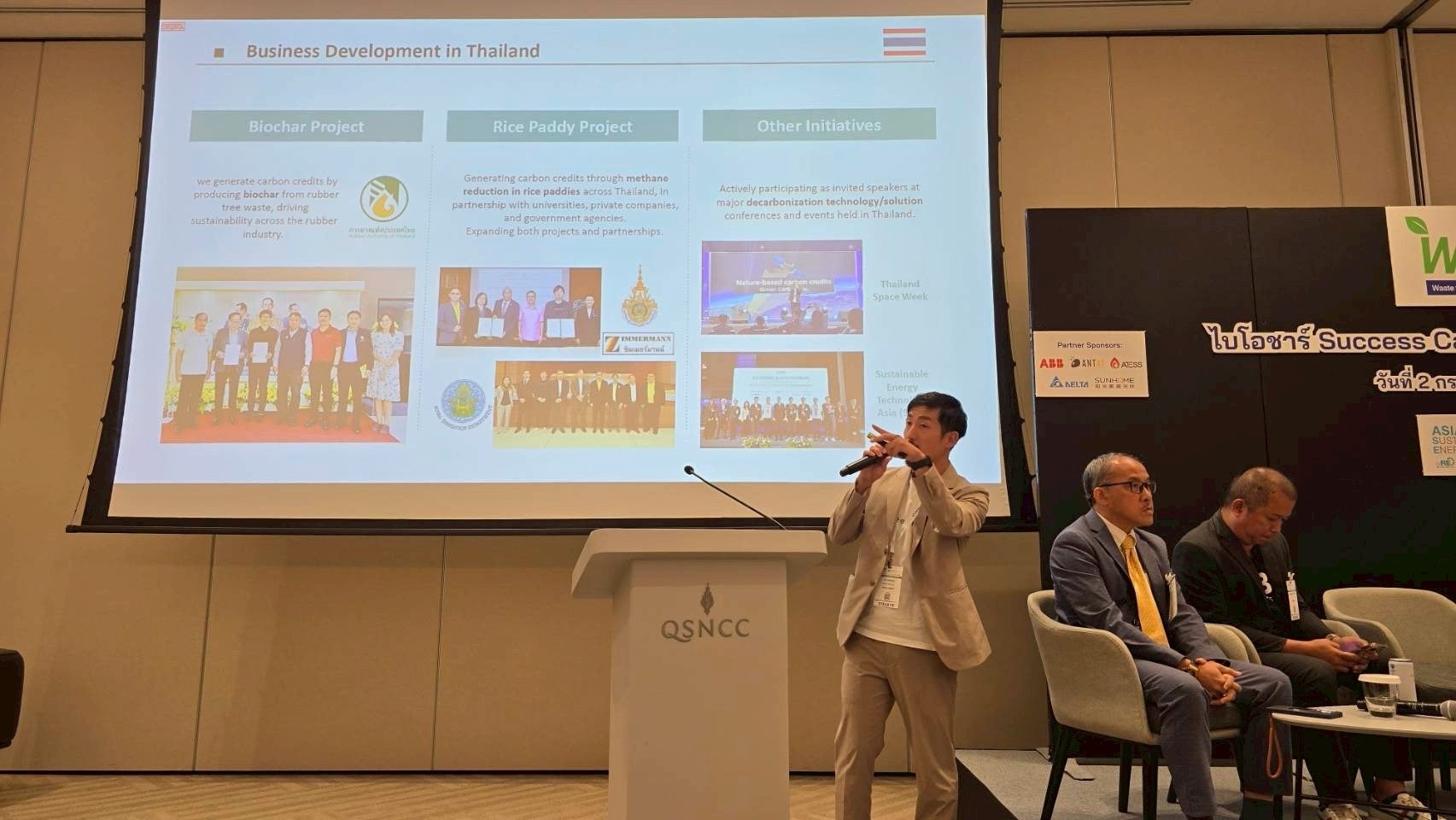 また、展示会の公式サイドイベントとして開催された専門セミナー「Biochar Success Case & Business Matching(主催:WETA)」に特別登壇者として招待され、東南アジアでのバイオ炭(CDRクレジット)創出に関する実績と連携を発表しました。