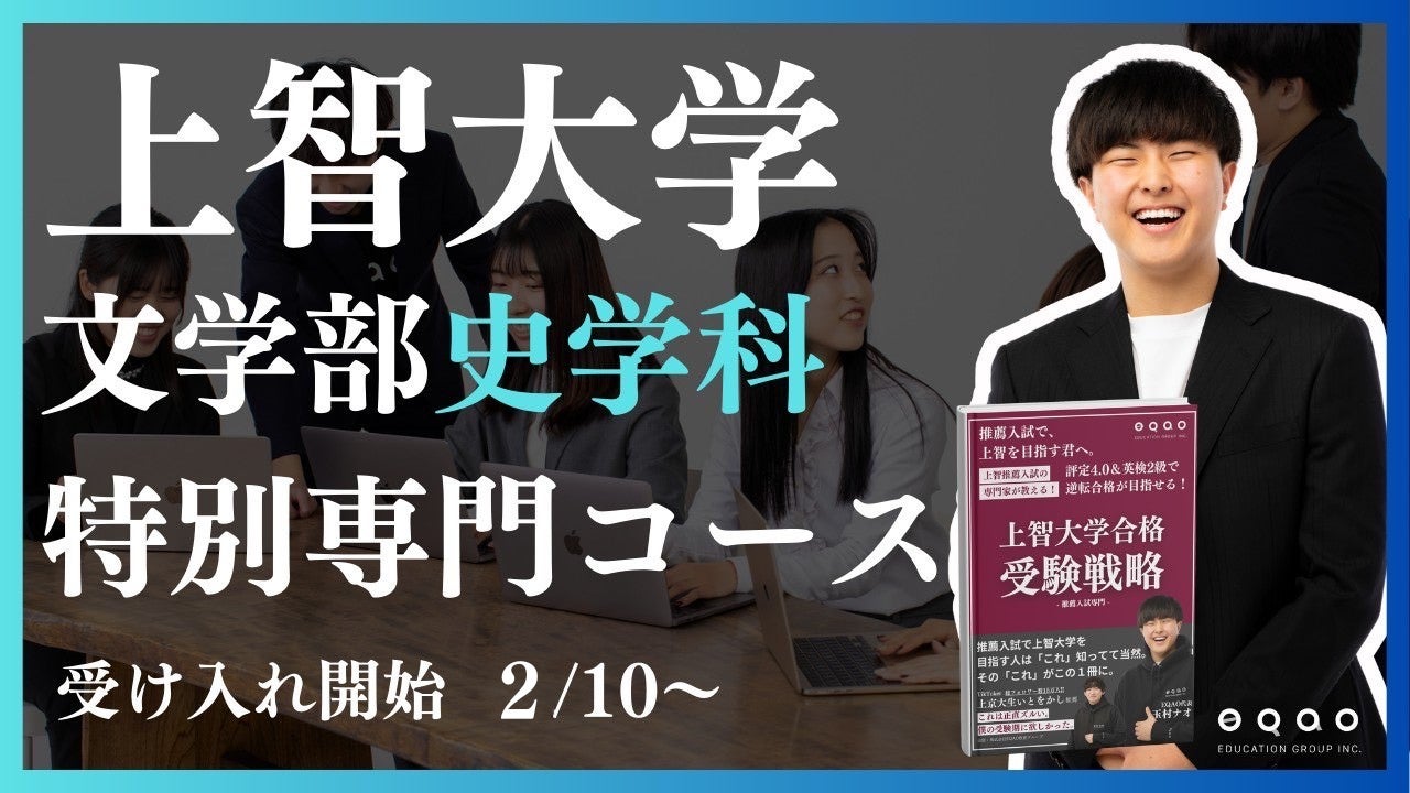 総合型選抜専門塾EQAO、上智大学文学部史学科専門コース受付開始!上智特化型のEQAOだからこそできる上智大学に合格するために必要な独自のメソッドで受験生を全力でサポート!受け入れ開始は2/10〜