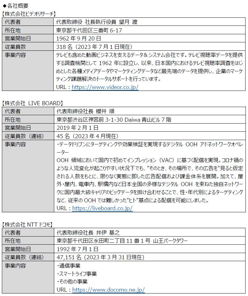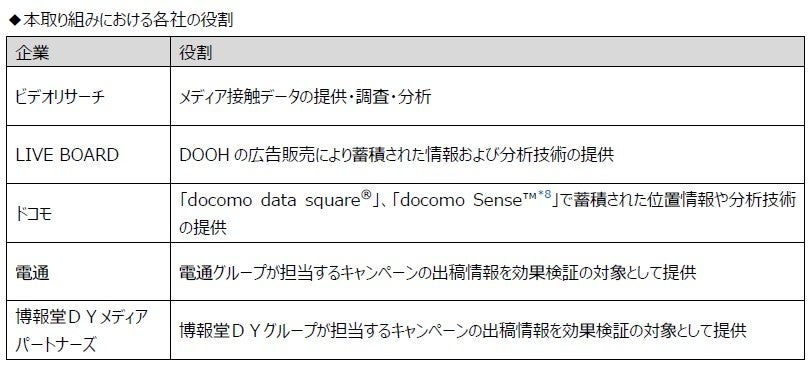 今後はドコモが保有する「docomo data square®*7」で蓄積された位置情報、アプリ利用ログ、ドコモ経済圏のデータとビデオリサーチが保有する生活者プロフィール情報などを活用した実証実験③を行うことで、持続性ある効果検証フレームおよびDOOHの価値を、納得感をもって示す体制構築を目指したいと考えています。