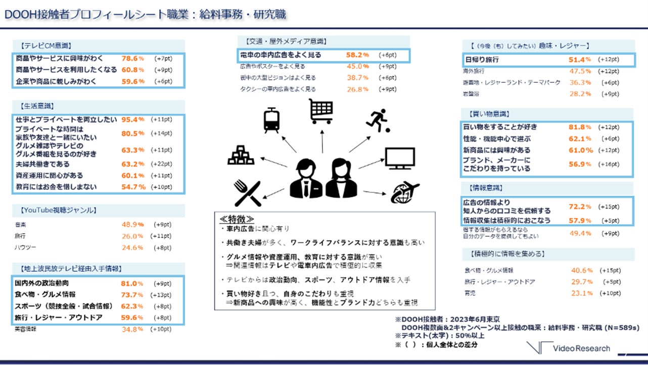 【図表3:DOOH接触量が多い職業(給料事務・研究職)のプロフィール例】